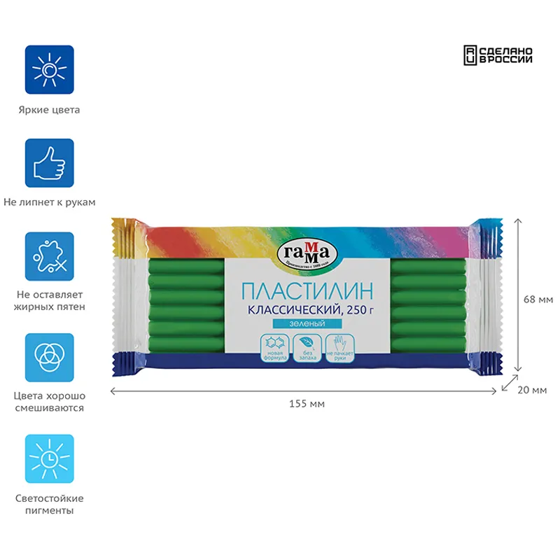 Пластилин "Классический" 250 гр, зеленый, 2 шт информация: