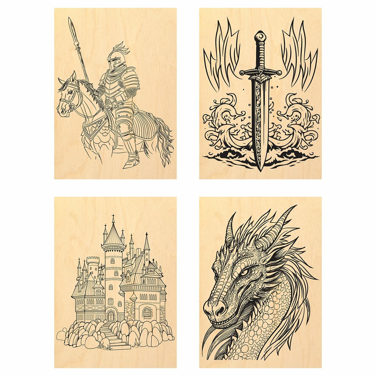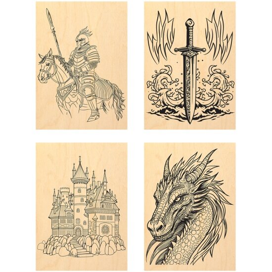 Набор досок для выжигания ТРИ совы по дереву "Рыцарь и дракон", 4 шт, 15х21 см (НВ_56779) информация: