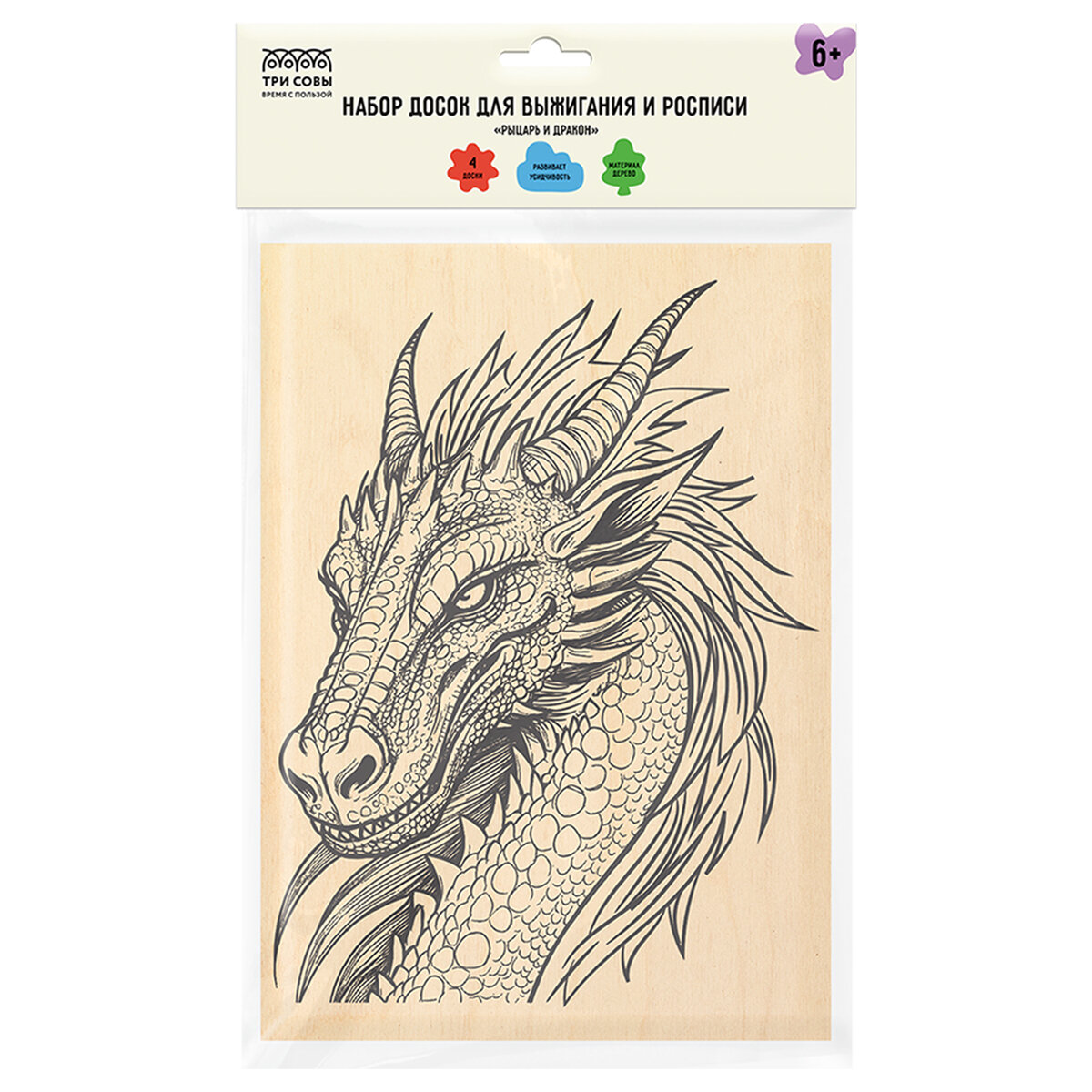 Отзывы на Набор досок для выжигания ТРИ совы по дереву "Рыцарь и дракон", 4 шт, 15х21 см (НВ_56779)
