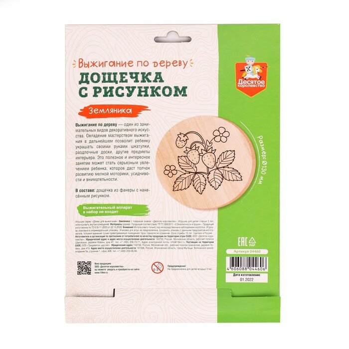 Доска для выжигания Десятое Королевство "Земляника", круг 130 мм информация: