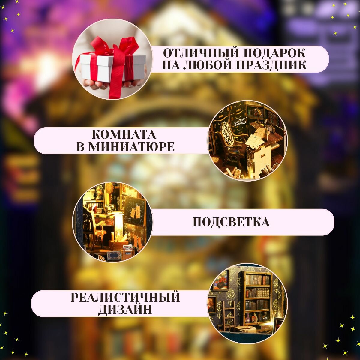 Румбокс книжный, интерьерный конструктор, "Настоящий детектив", DIY House, подарочный набор информация: