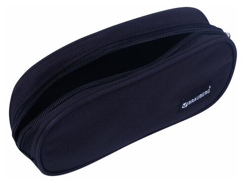 Пенал-косметичка BRAUBERG овальный, полиэстер, "Black", 22х9х5 см, 229271