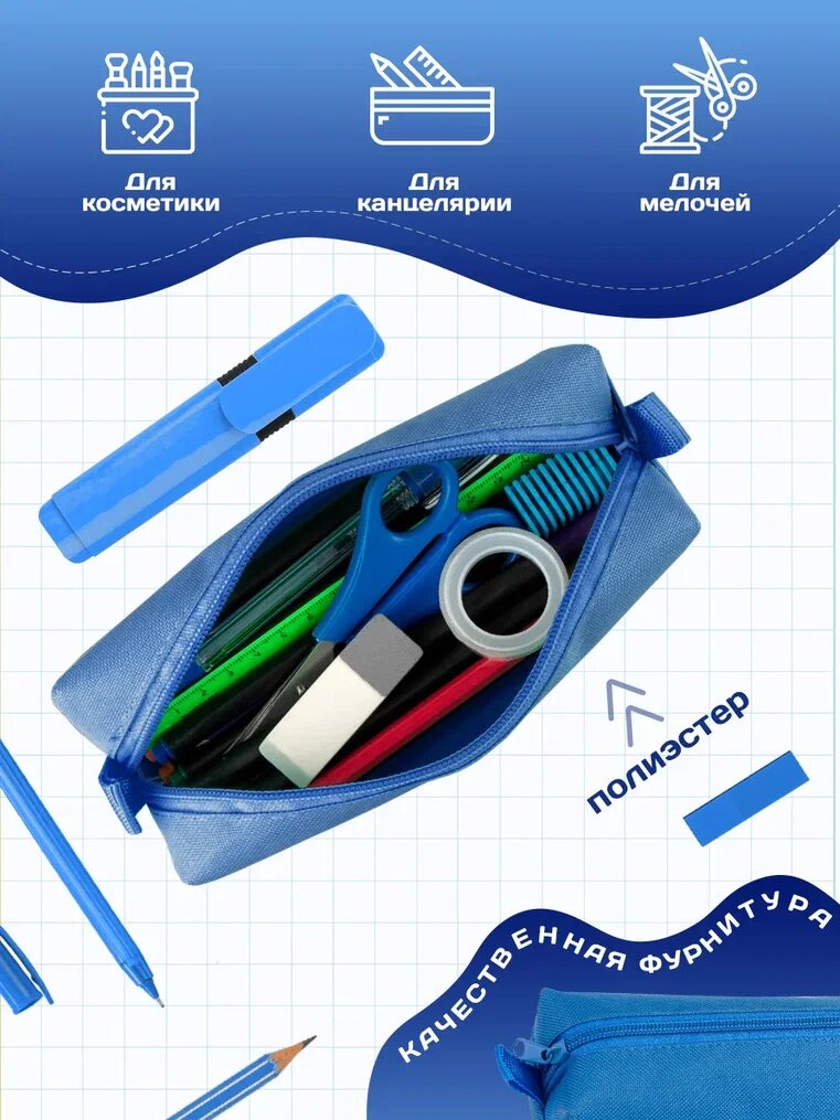Пенал школьный для девочек и мальчиков AXLER маленький мягкий для канцелярии карандашей ручек, детский для школы и подростков, тканевая косметичка информация: