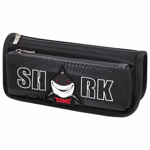 Пенал юнландия, 2 отделения, полиэстер, "Shark", черный, 21х6х9 см, 270271