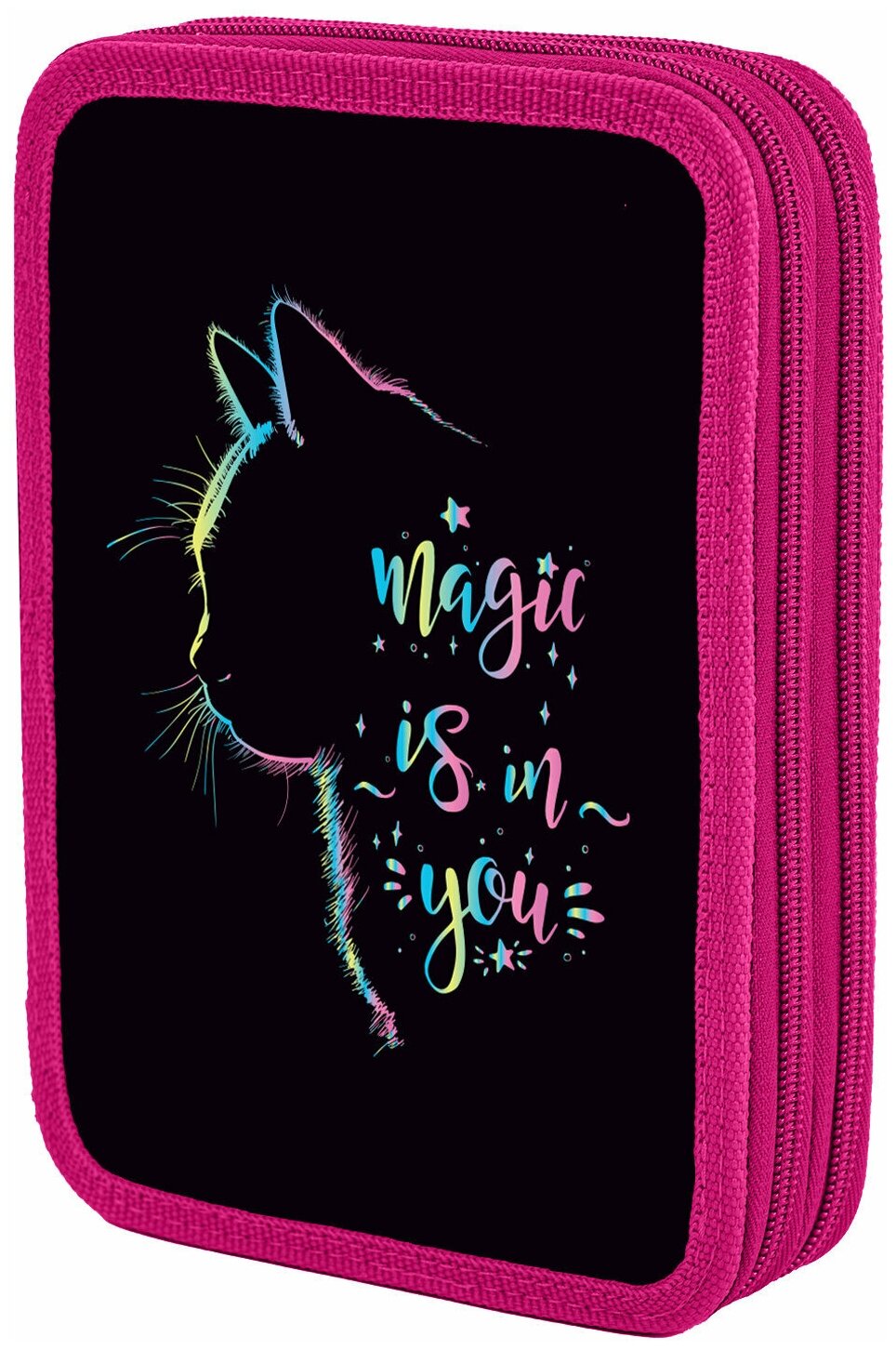 Пенал школьный для девочки / подростка для ручек, карандашей Brauberg, 2 отделения, полиэстер, 21х14 см, Magic Cat, 271542