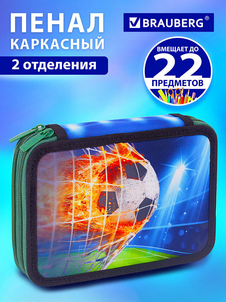 10 цен на Пенал BRAUBERG, 2 отделения, полиэстер, 21х14 см, "Fire football", 270322