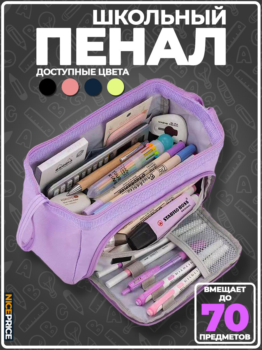 10 цен на Пенал школьный большой 3 отделения фиолетовый