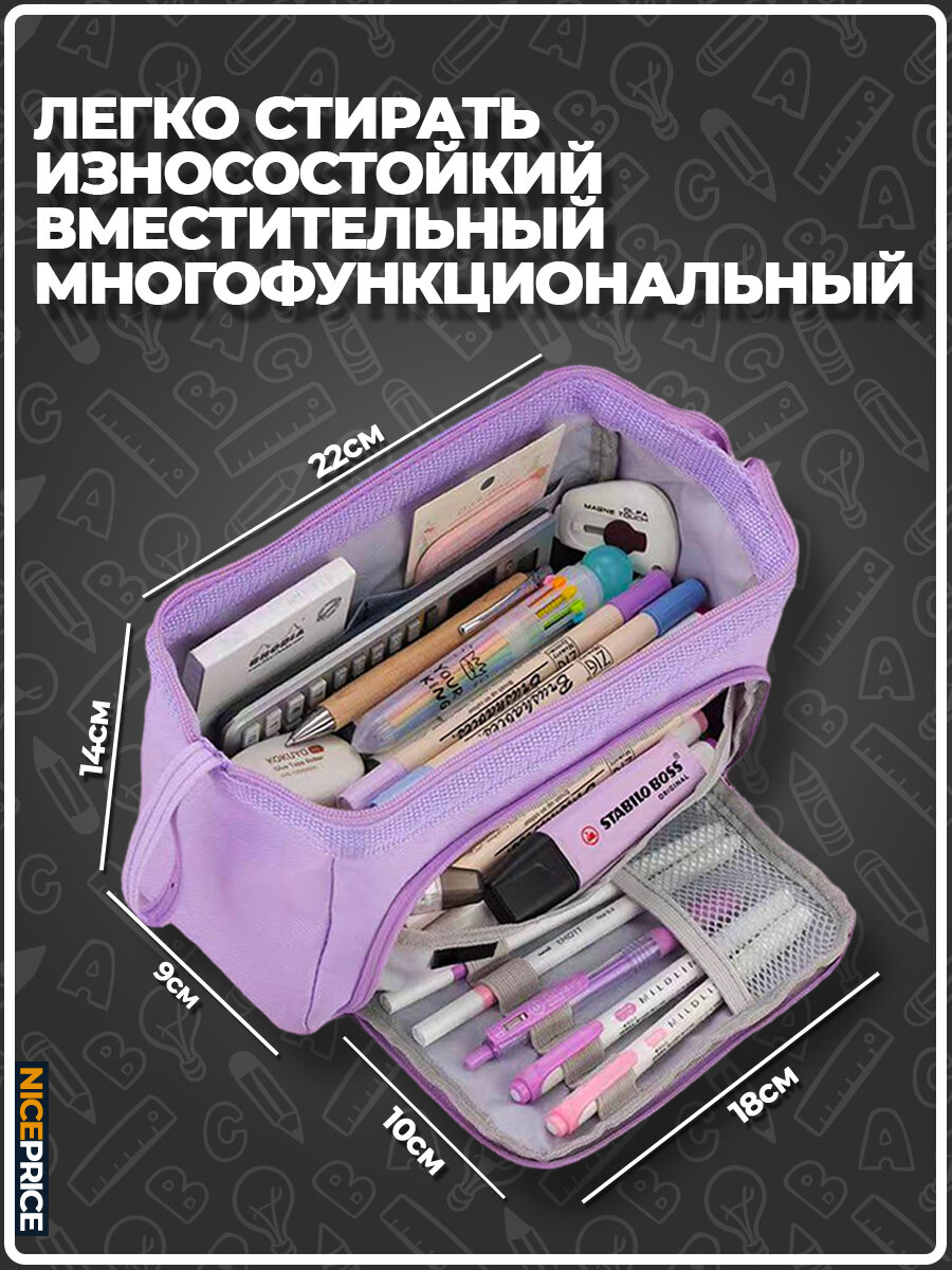Пенал школьный большой 3 отделения фиолетовый 750 ₽