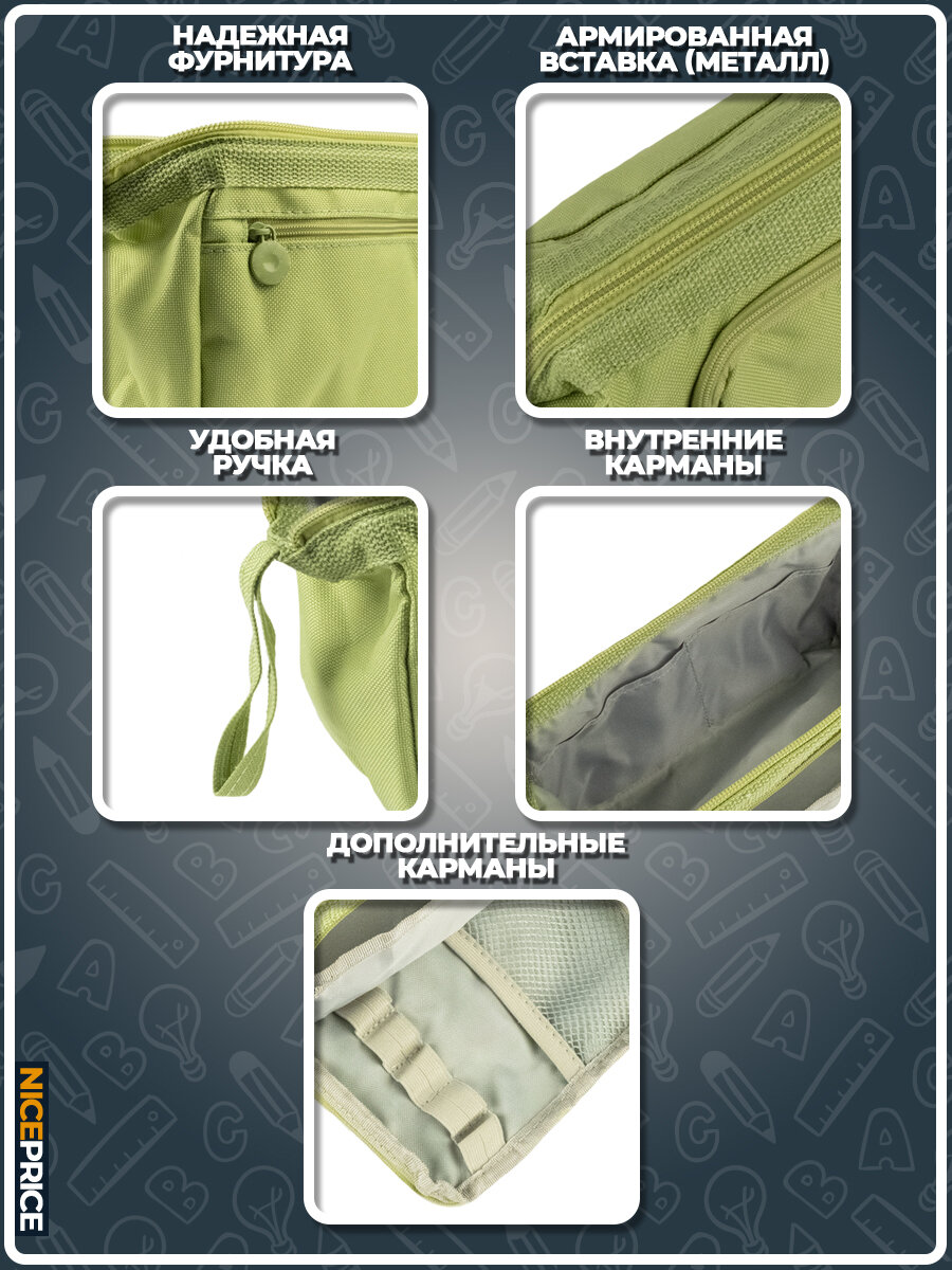 Пенал школьный большой 3 отделения зелёный 750 ₽