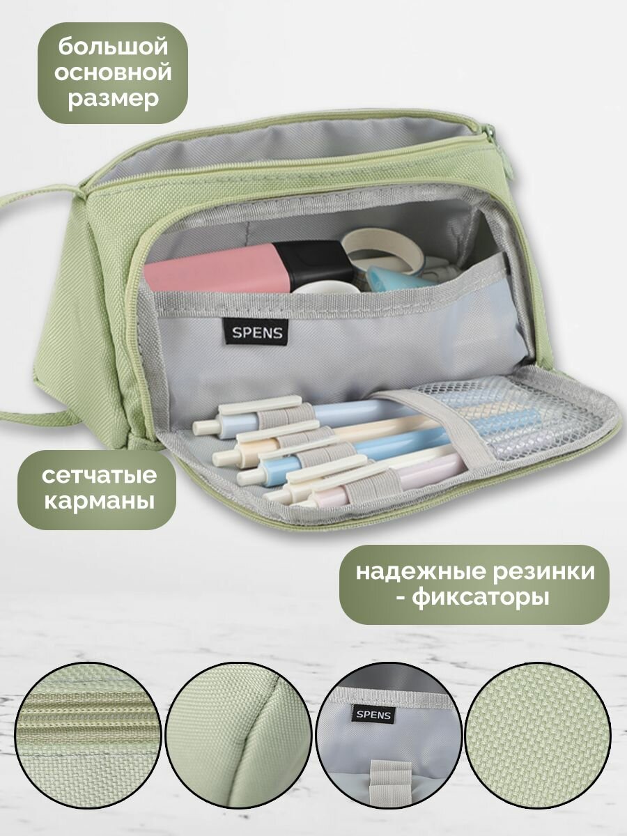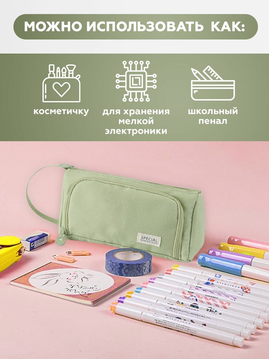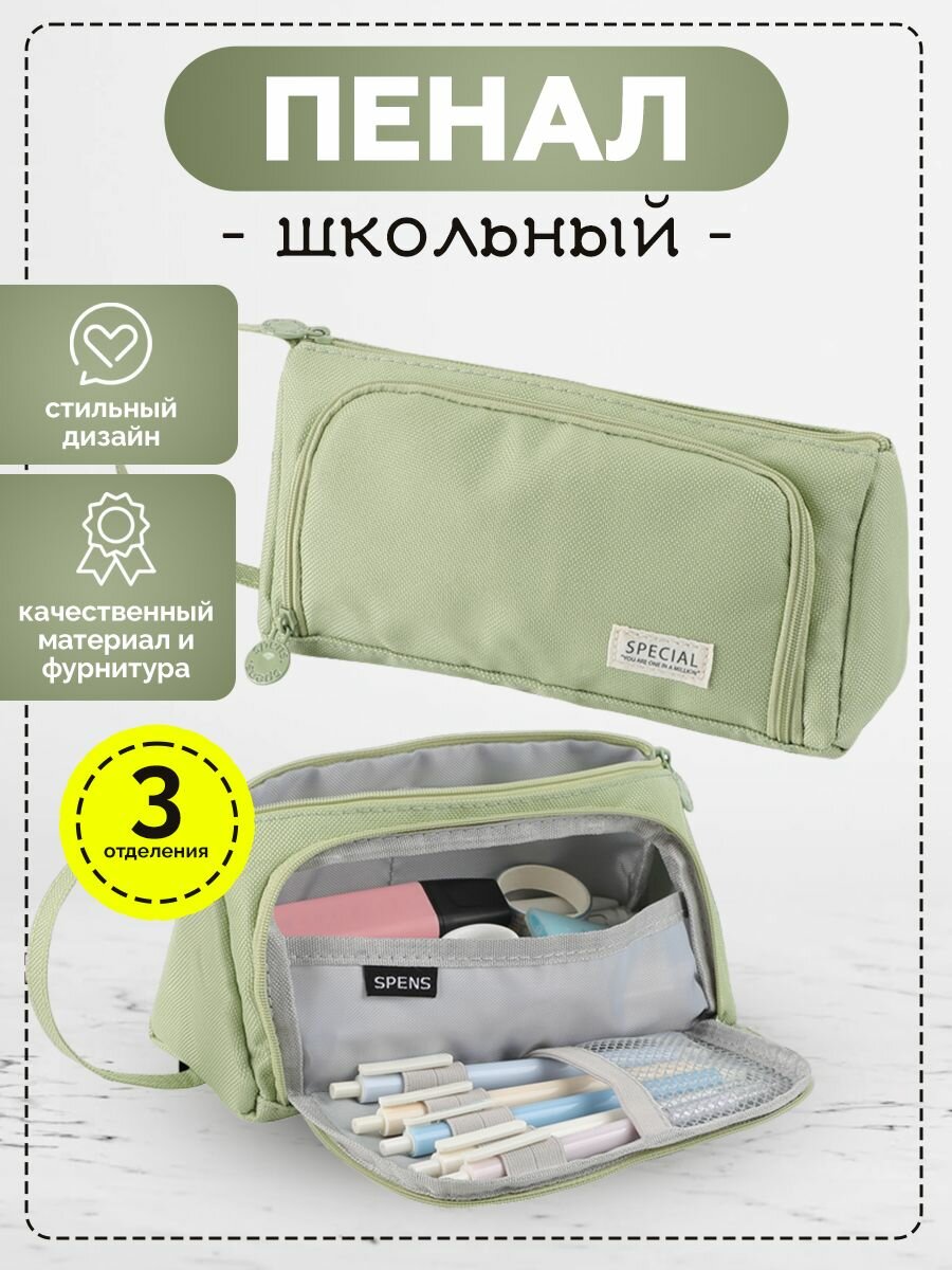 Отзывы на Пенал для девочек и мальчиков 3 отдела на молнии для школы, светлый хаки