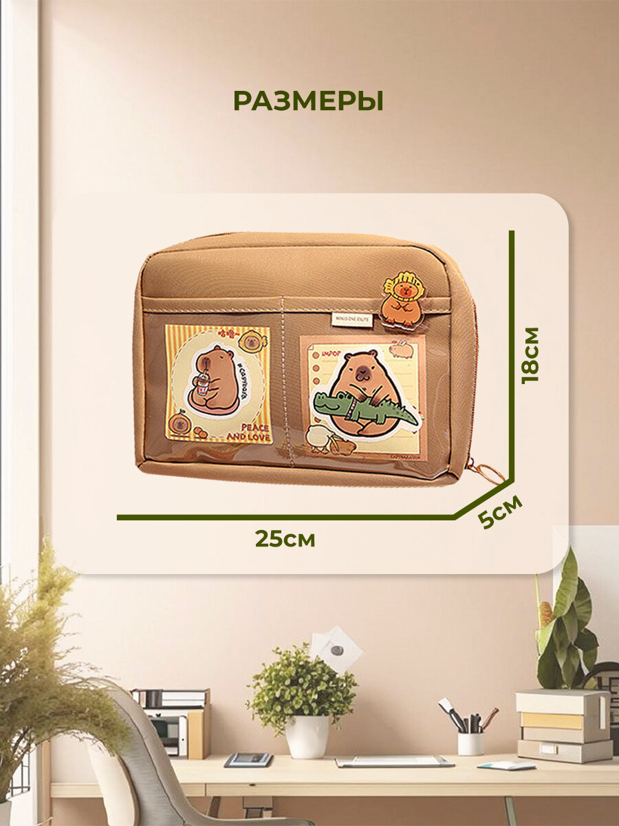 Школьный детский пенал для подростков с капибарой - Эстетичный канцелярский органайзер на молнии, 4 отделения без принадлежностей 999 ₽