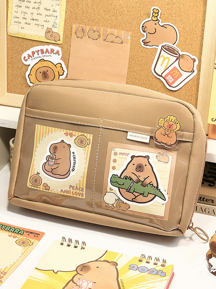10 цен на Школьный детский пенал для подростков с капибарой - Эстетичный канцелярский органайзер на молнии, 9 отделений, 7 предметов