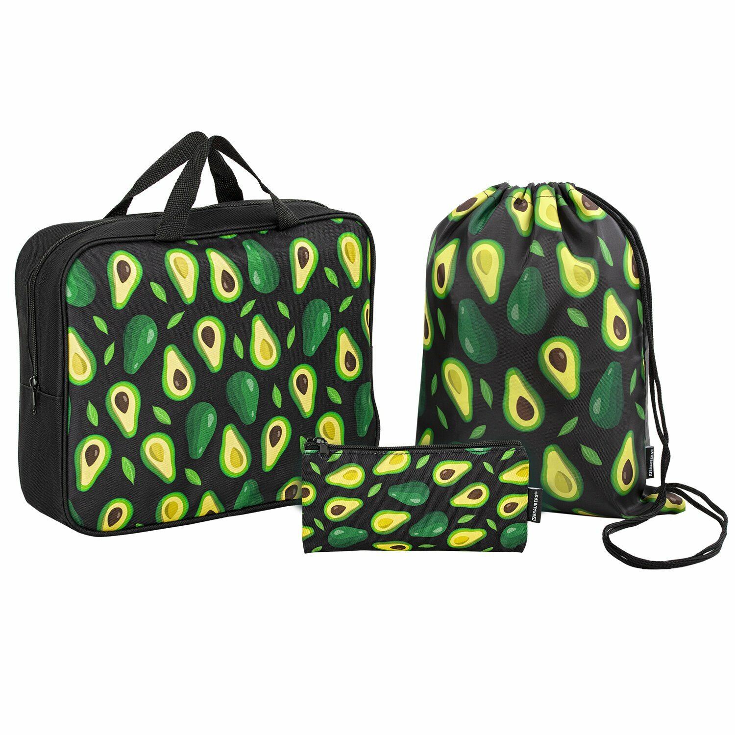 Набор школьных сумок Brauberg "Avocado", папка А4, мешок для обуви 42х33 см, пенал-косметичка 20х10 см информация: