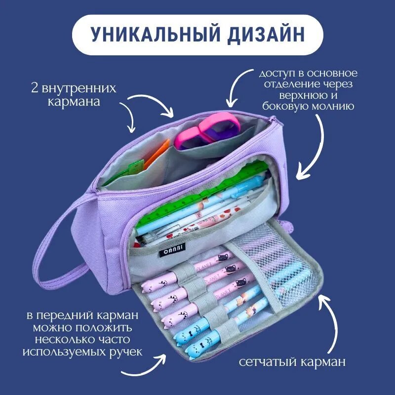 Пенал школьный для мальчиков и девочек CANBI, фиолетовый информация: