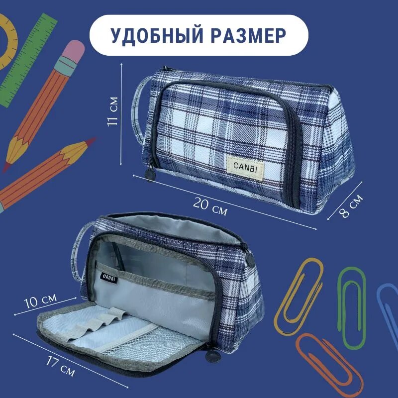 Пенал школьный для мальчиков и девочек CANBI, серо-синий информация: