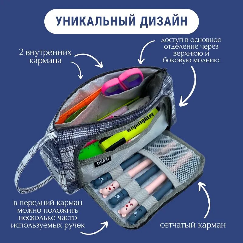 10 цен на Пенал школьный для мальчиков и девочек CANBI, серо-синий
