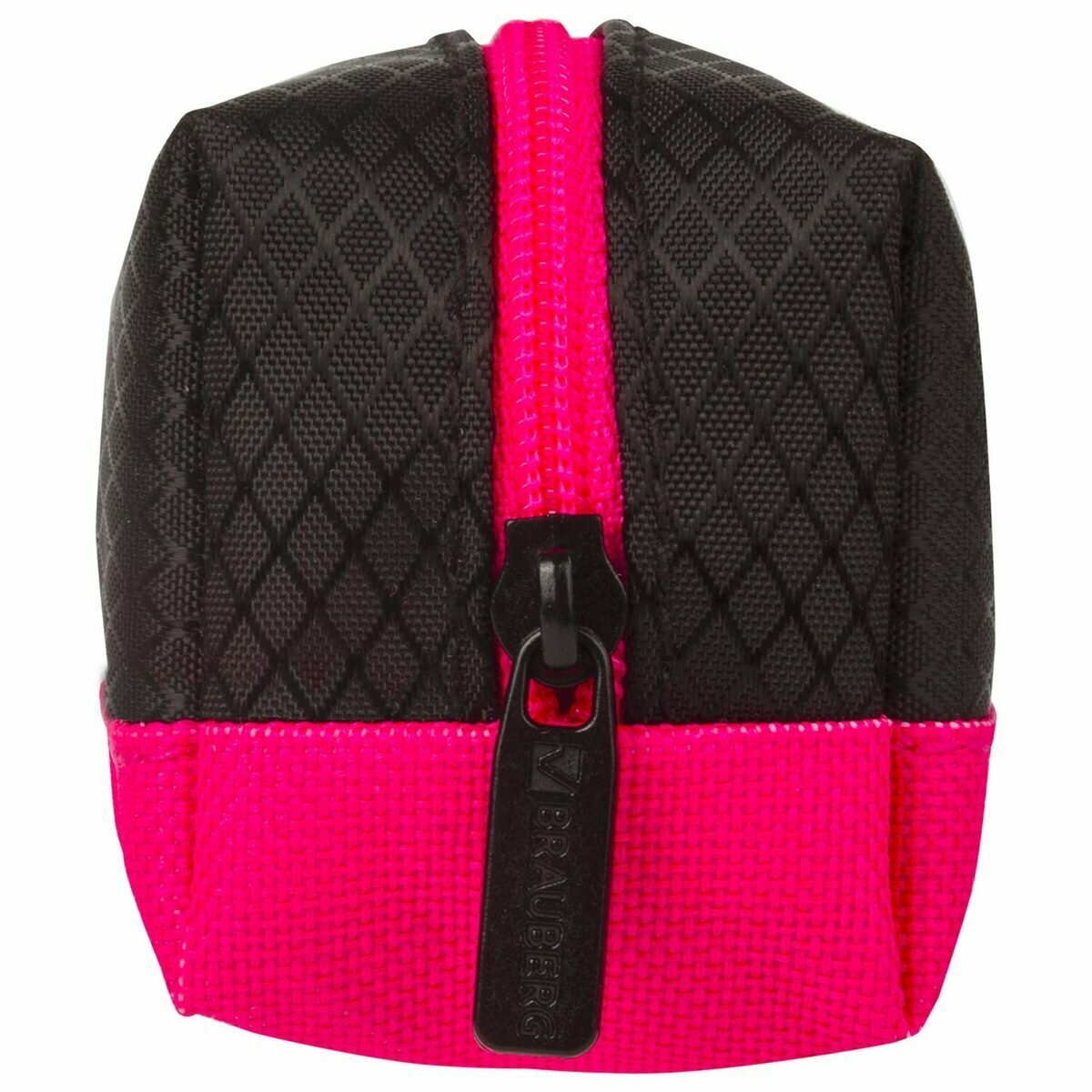 Пенал-косметичка школьный для ручек, карандашей для мальчика/девочки/подростка Brauberg, мягкий, Black&Bright, черно-розовый, 21х5х5 см, 229006