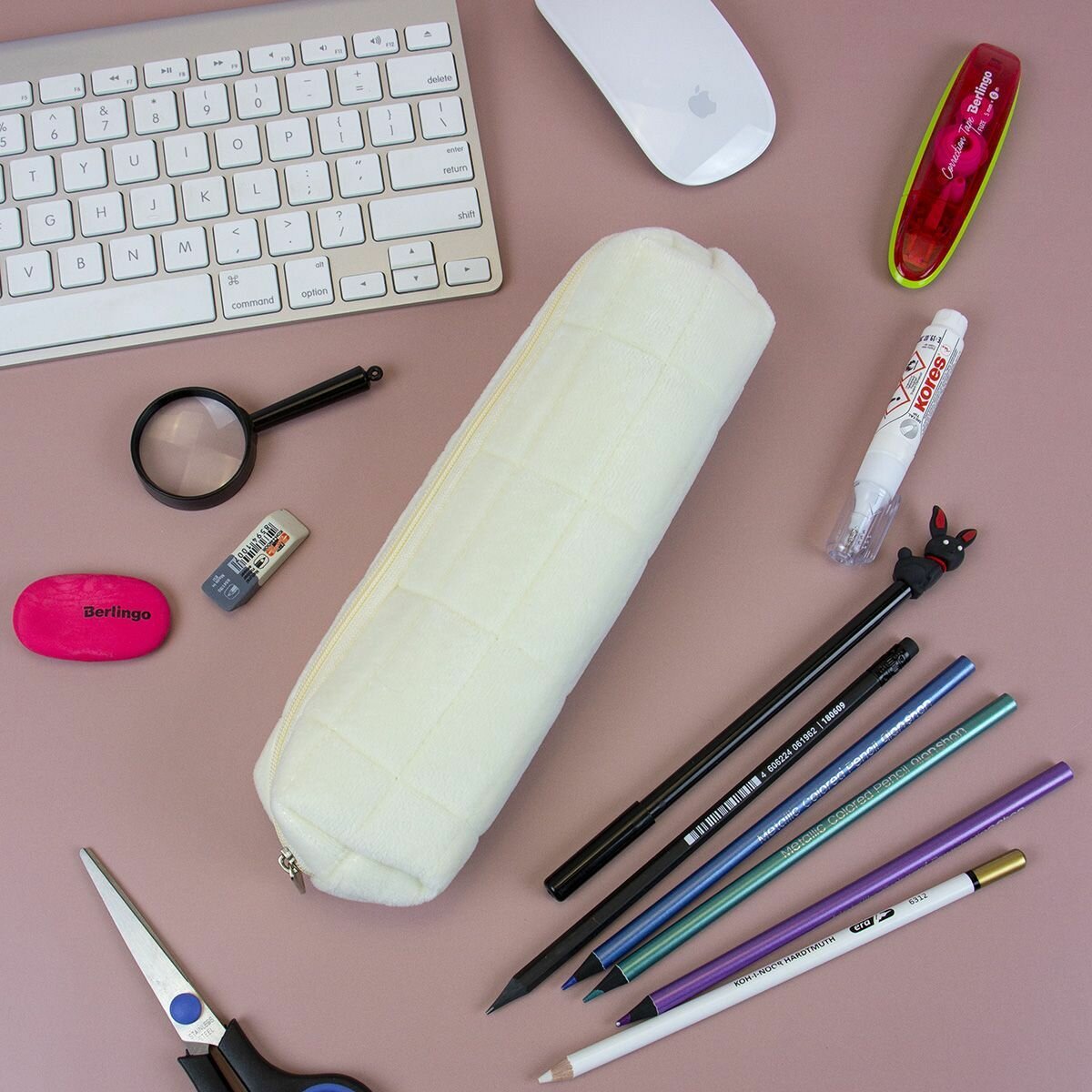 Отзывы на Школьный плюшевый пенал, пенал-косметичка однотонный в клетку - Белый