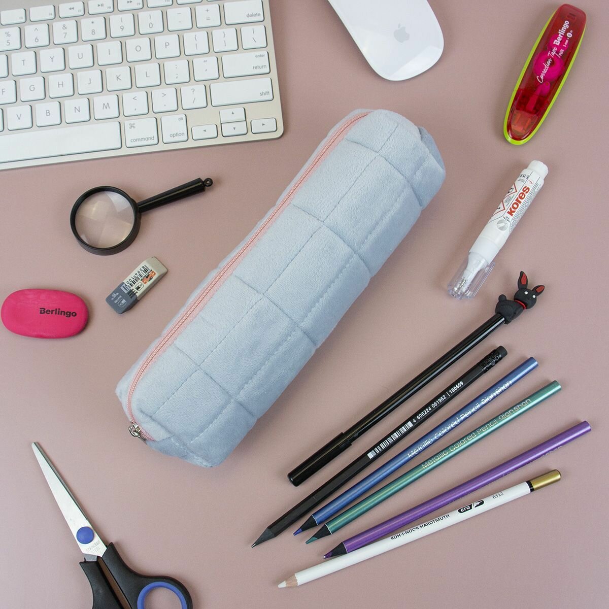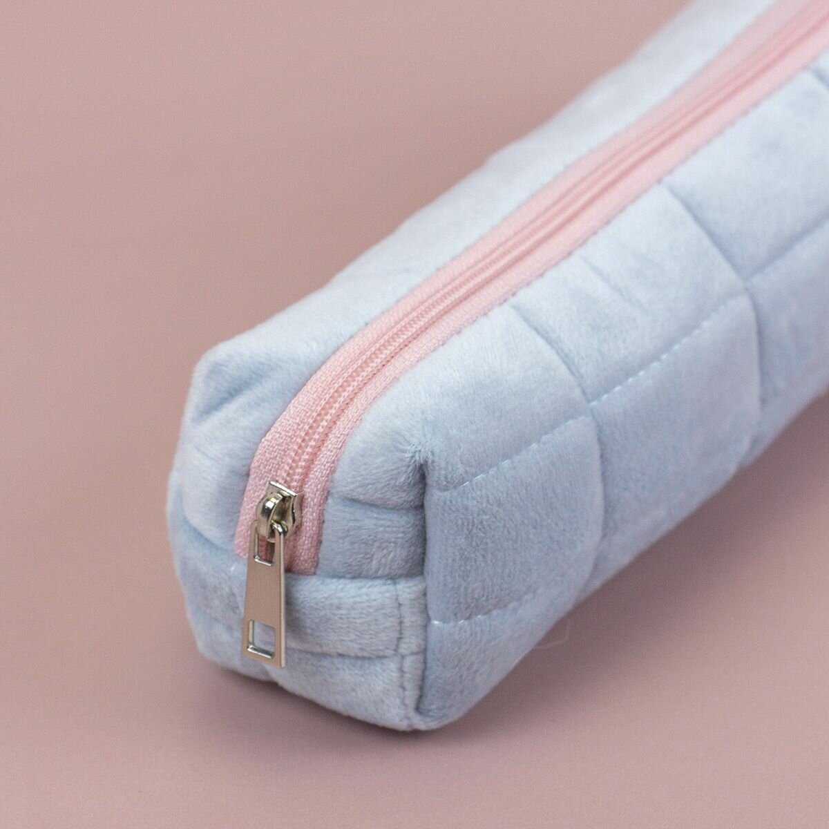 10 цен на Школьный плюшевый пенал, пенал-косметичка однотонный в клетку - Голубой