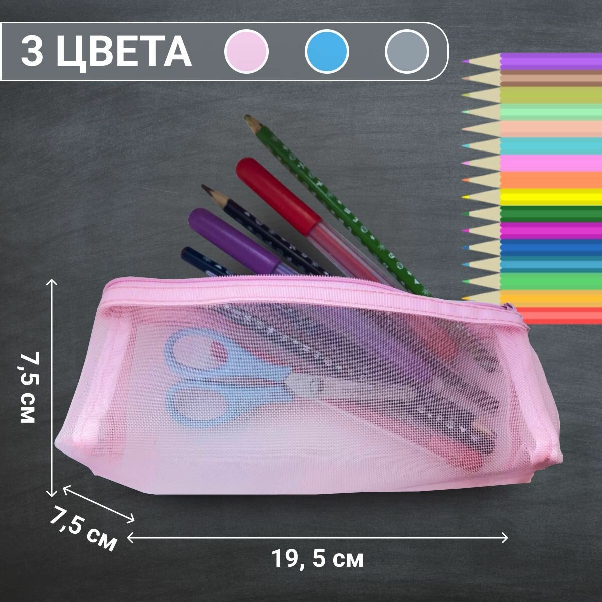 Отзывы на Прозрачный школьный пенал косметичка сетчатый из нейлона розовая