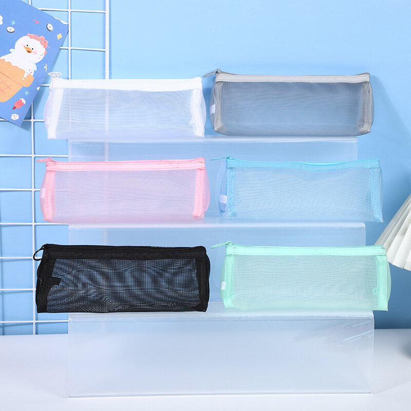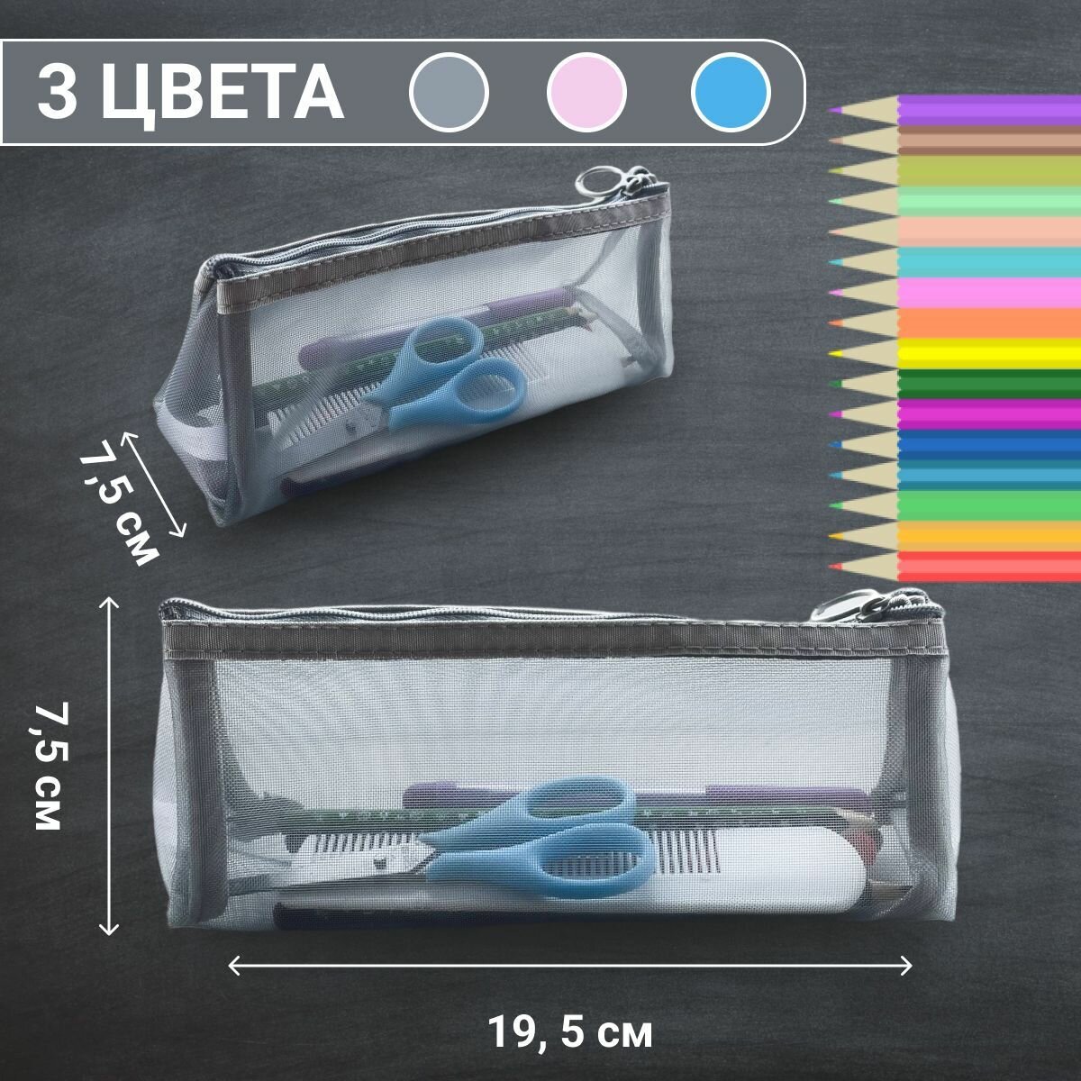 Отзывы на Прозрачный школьный пенал косметичка сетчатый из нейлона серый