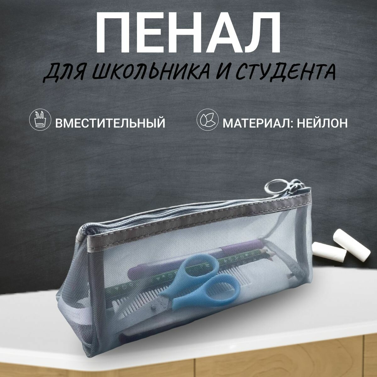 Прозрачный школьный пенал косметичка сетчатый из нейлона серый информация: