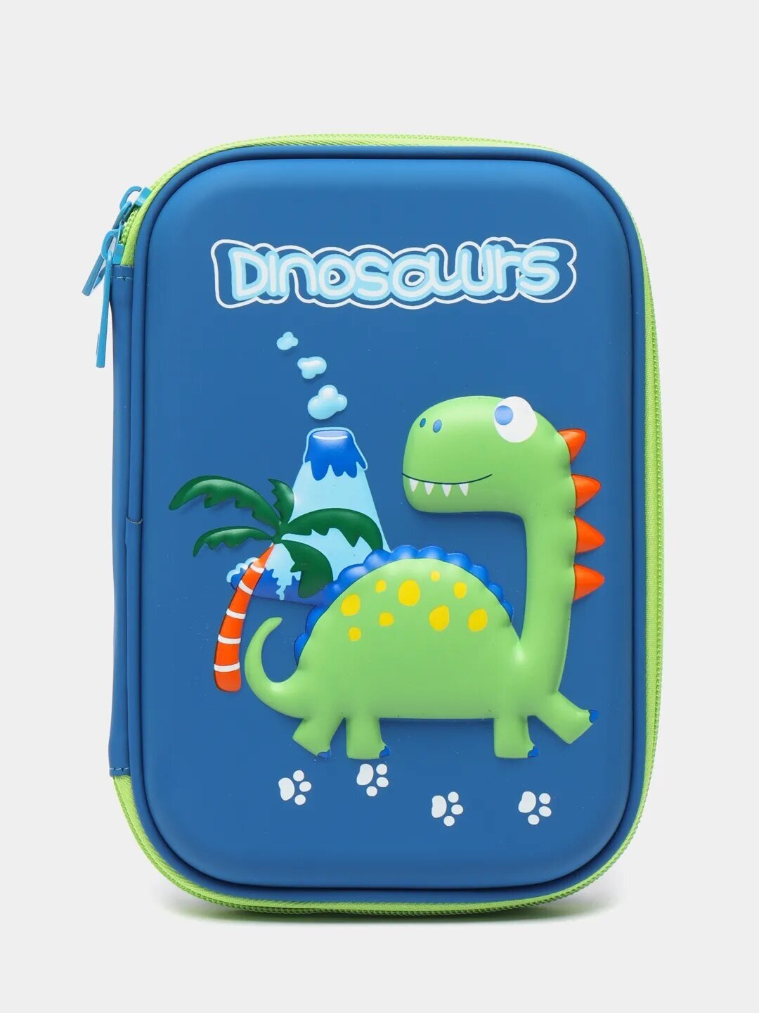 Пенал школьный с динозавром в школу для девочек мальчиков с 3д рисунком на молнии, синий информация:
