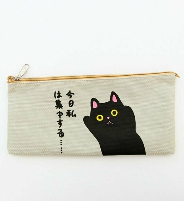Отзывы на Школьный холщовый пенал косметичка Аниме с Котиком, серый цвет