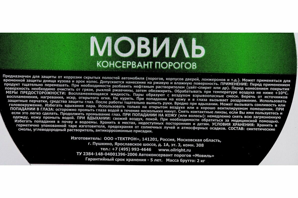 10 цен на Мовиль OILRIGHТ 6110 антикоррозионная паста ведро 2кг Автоконсервант порогов