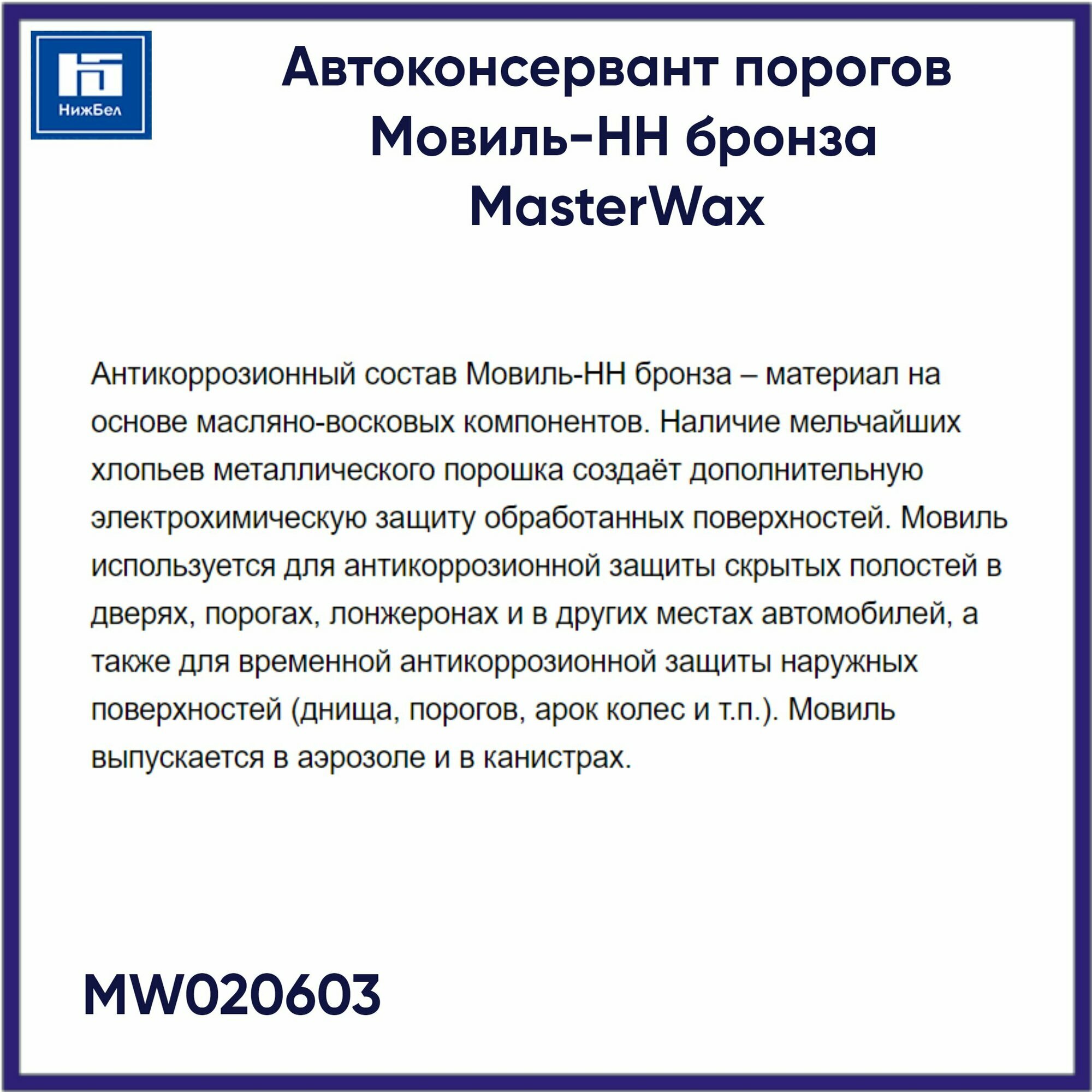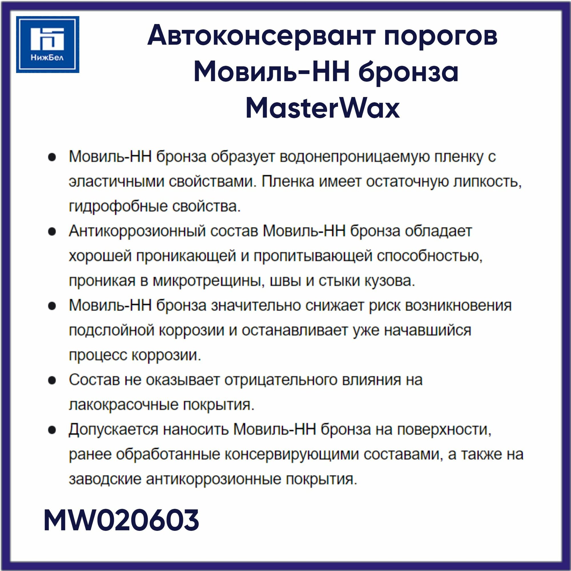 MASTERWAX MW020603 Мовиль НН бронза (канистра) 1 л Master Wax информация: