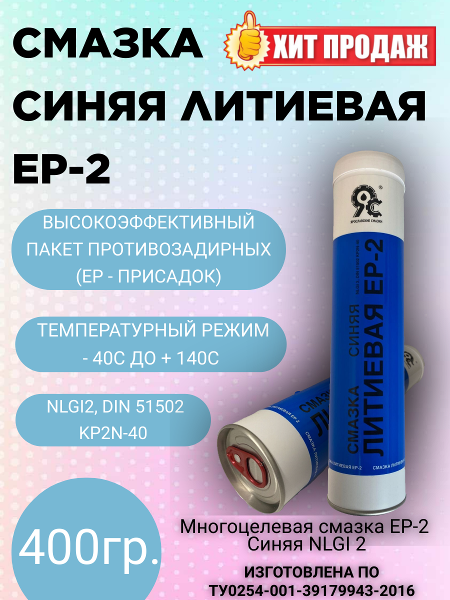Смазка литиевая EP-2 400г картридж (синяя) ярославские смазки информация: