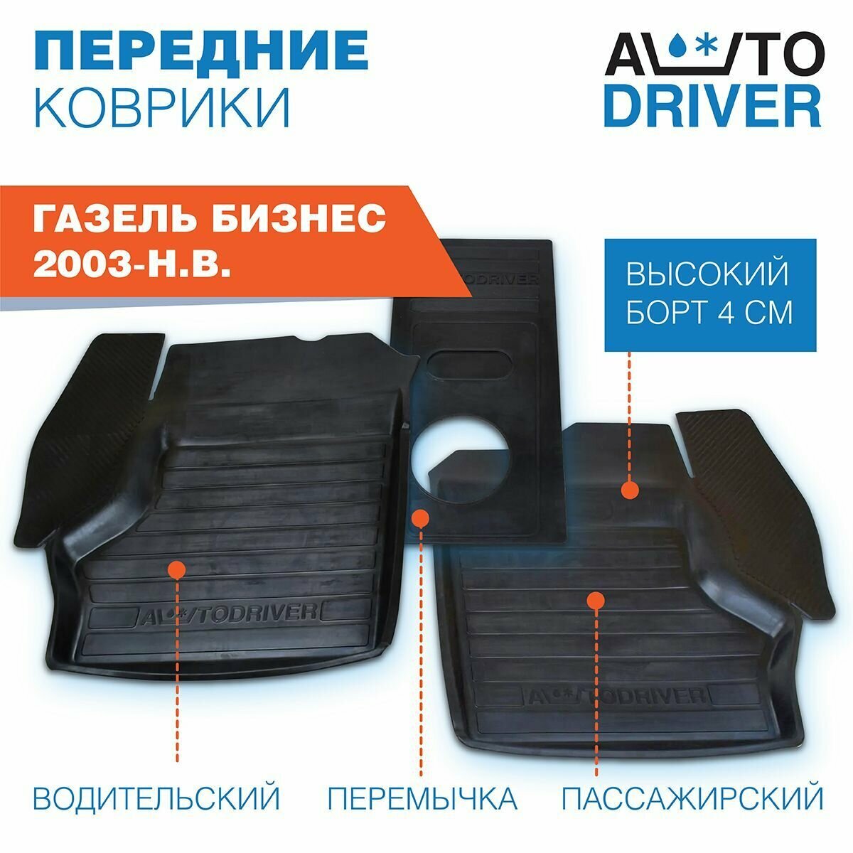 AVTODRIVER ADRAVG279 Коврики салона ГАЗель 3302 резиновые (к-т 3 шт.); AvtoDriver