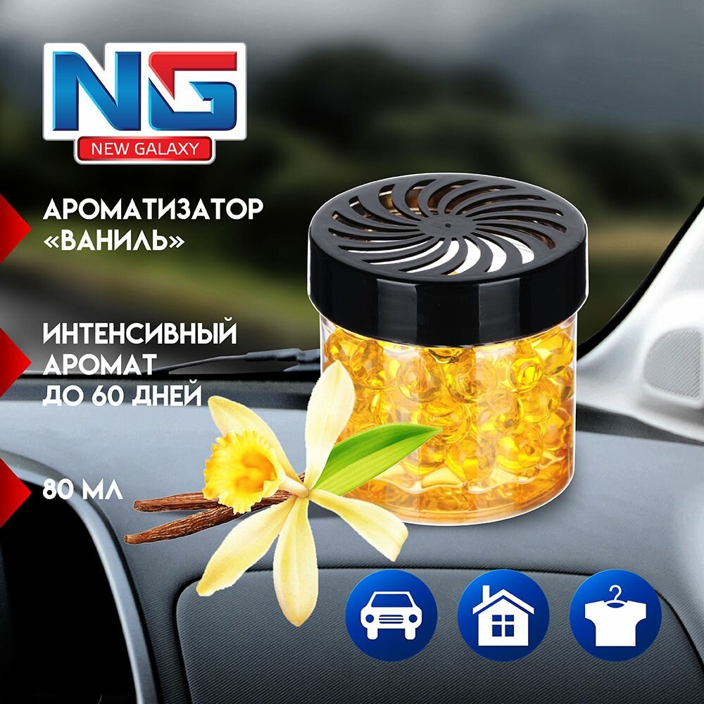 10 цен на Ароматизатор NEW GALAXY гелевый, жемчужины, ваниль, желтый, 1 шт.