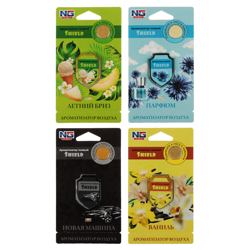 10 цен на NEW GALAXY Ароматизатор подвесной гелевый Shield ваниль, новая машина, летний бриз, парфюм