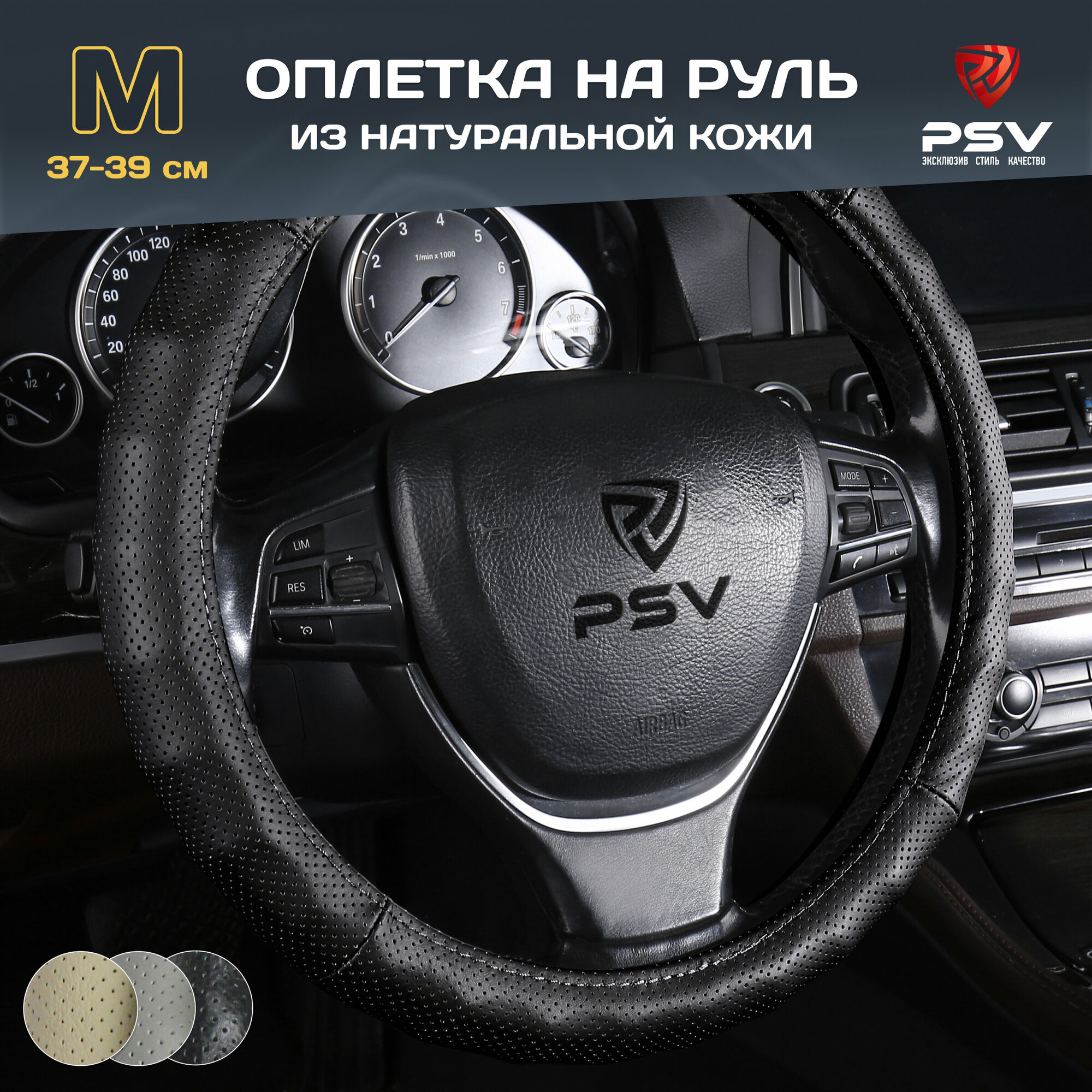 10 цен на Оплетка чехол на руль из натуральной кожи PSV KLASSIKA (Черный) М 37-39см, с перфорацией, 136113
