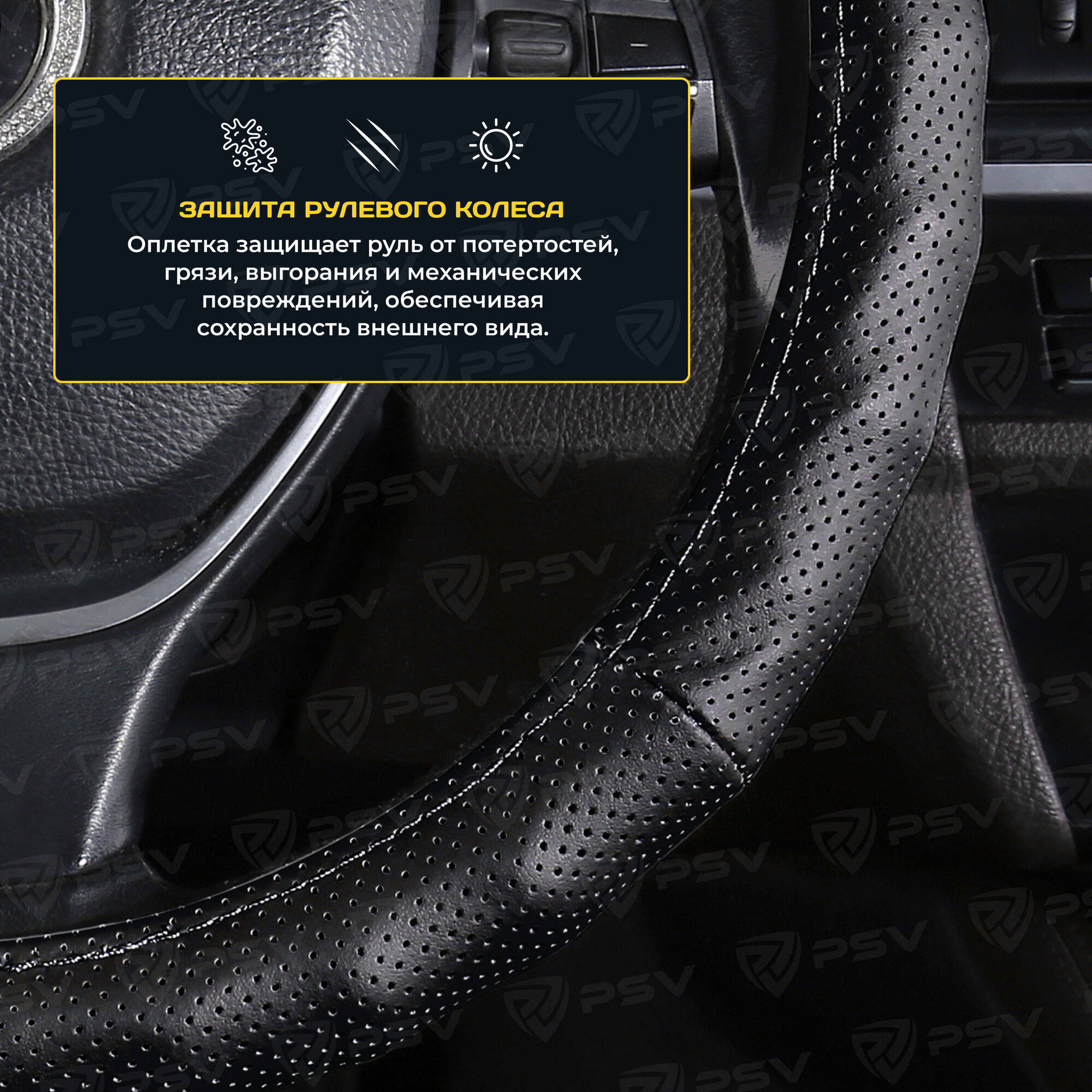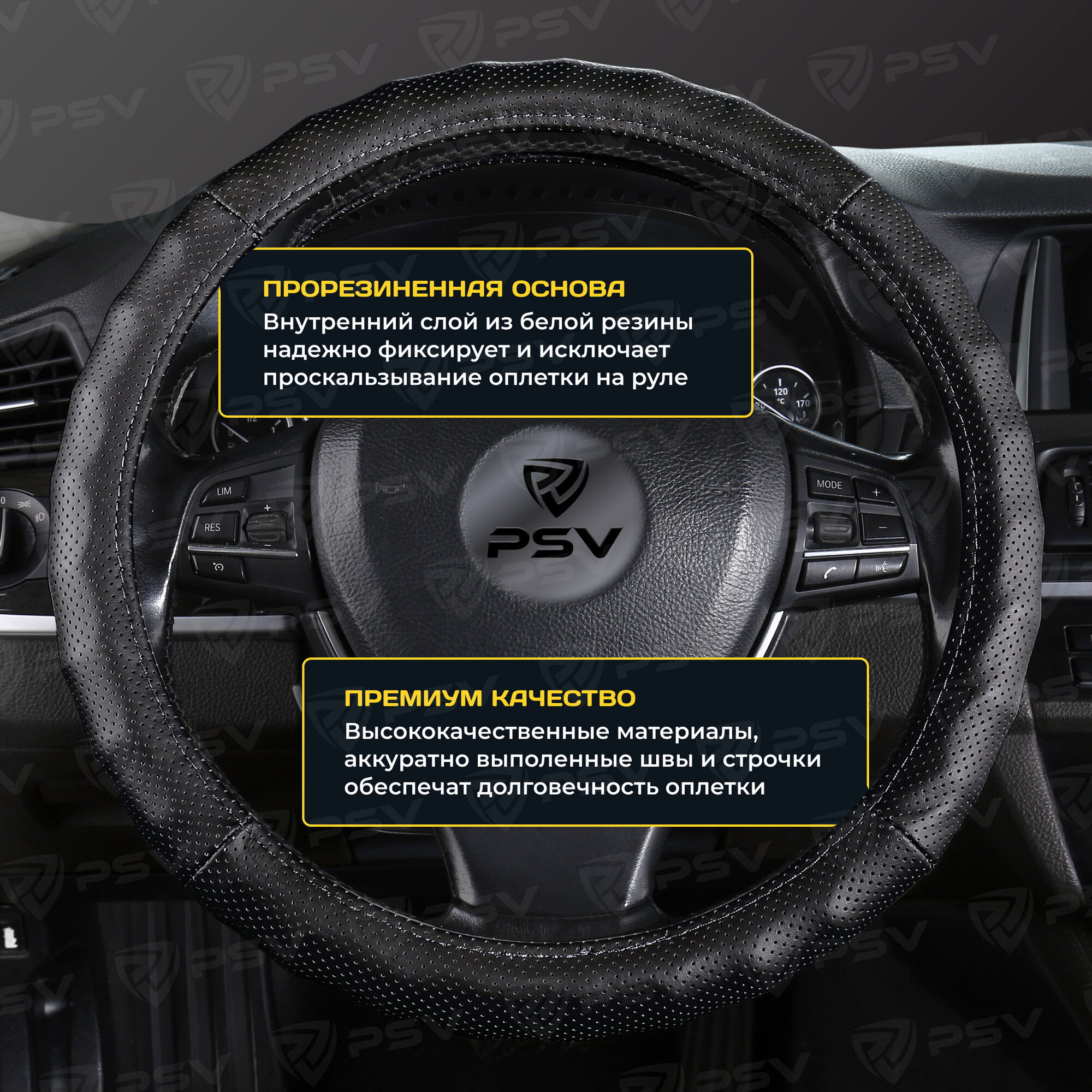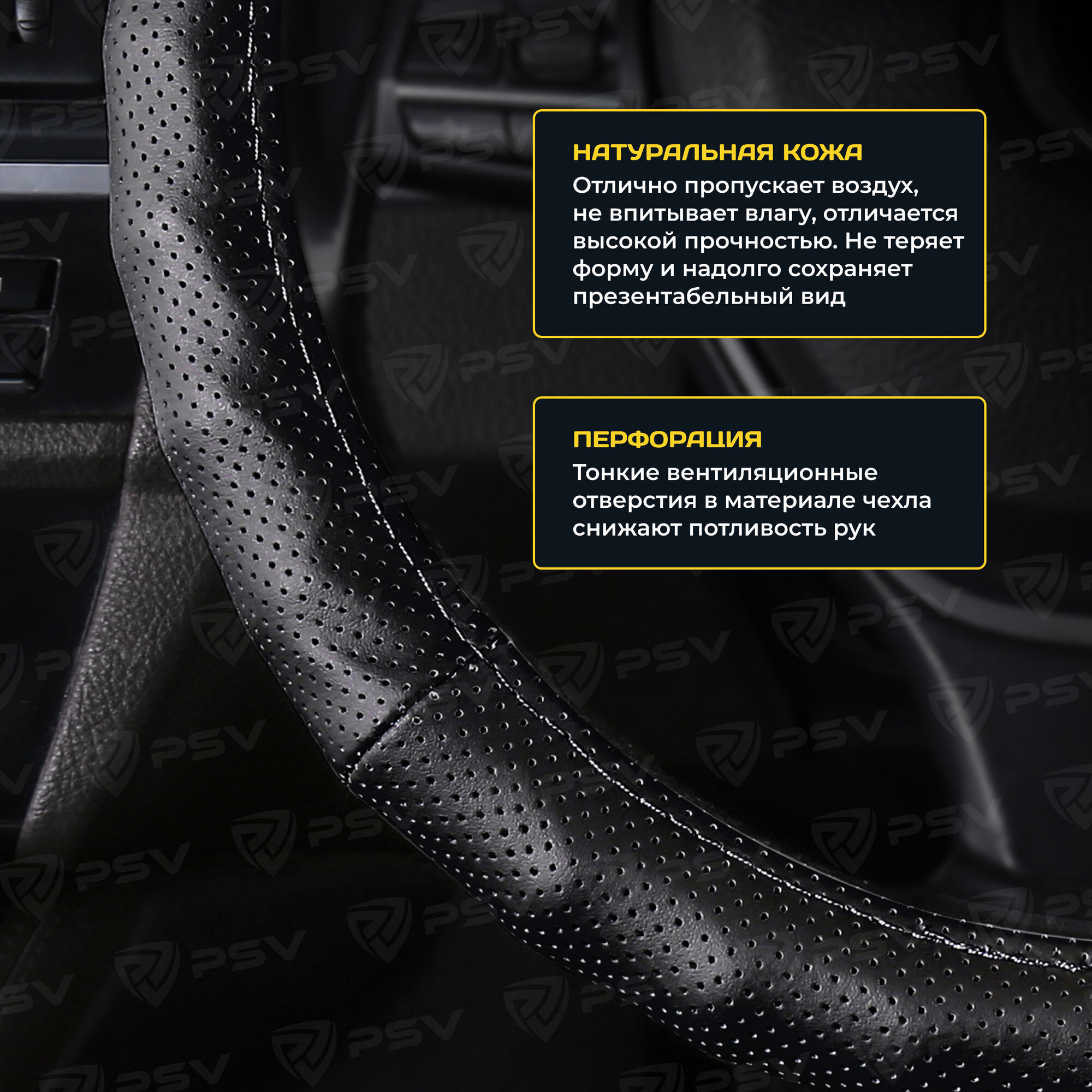 10 цен на Оплетка чехол на руль из натуральной кожи PSV KLASSIKA (Черный) S 35-37см, с перфорацией, 136116