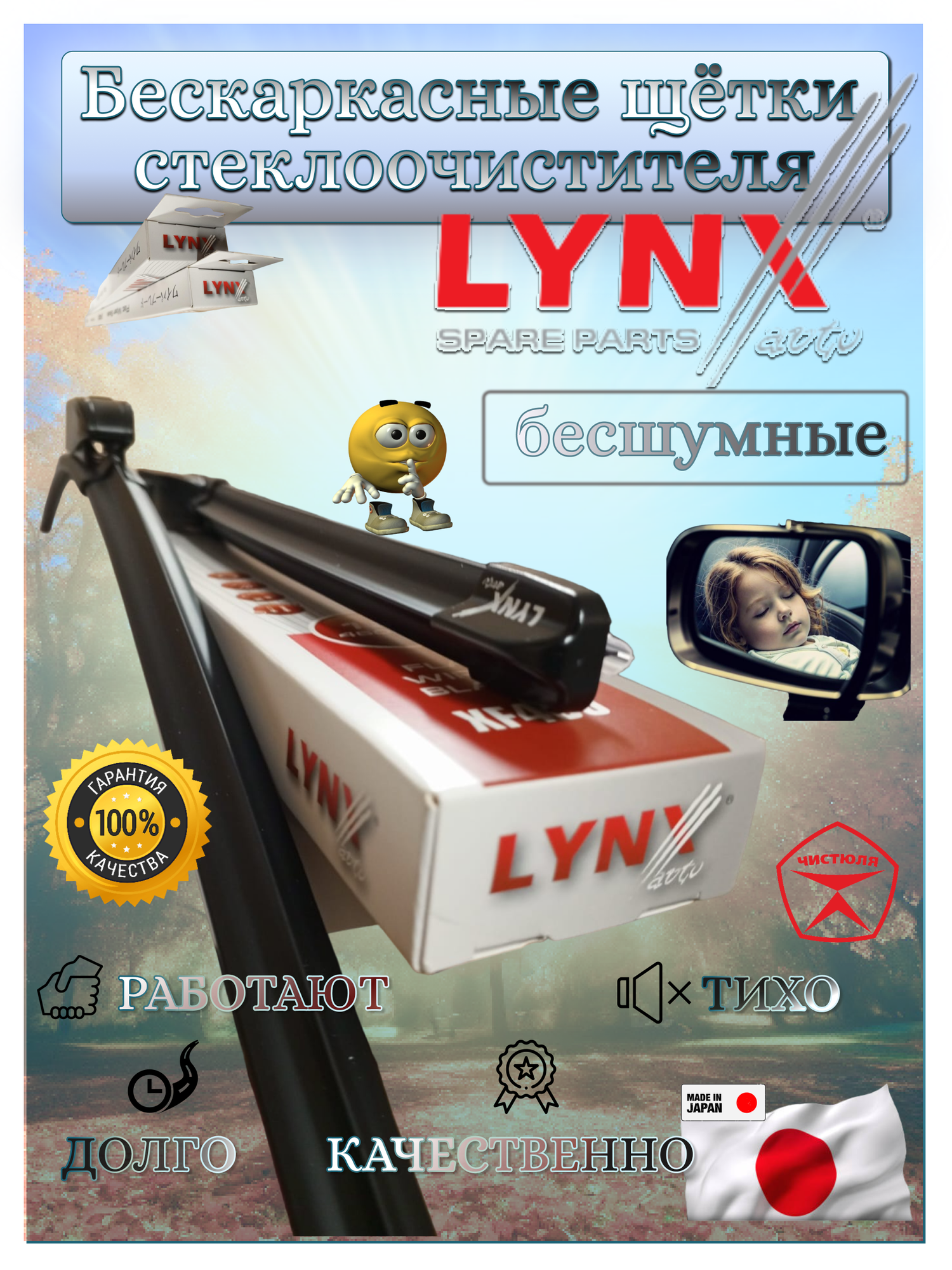 | Подробная комплектация | Щетки стеклоочистителя LYNXauto бескаркасные всесезонные зима лето осень весна комплект с адаптерами |