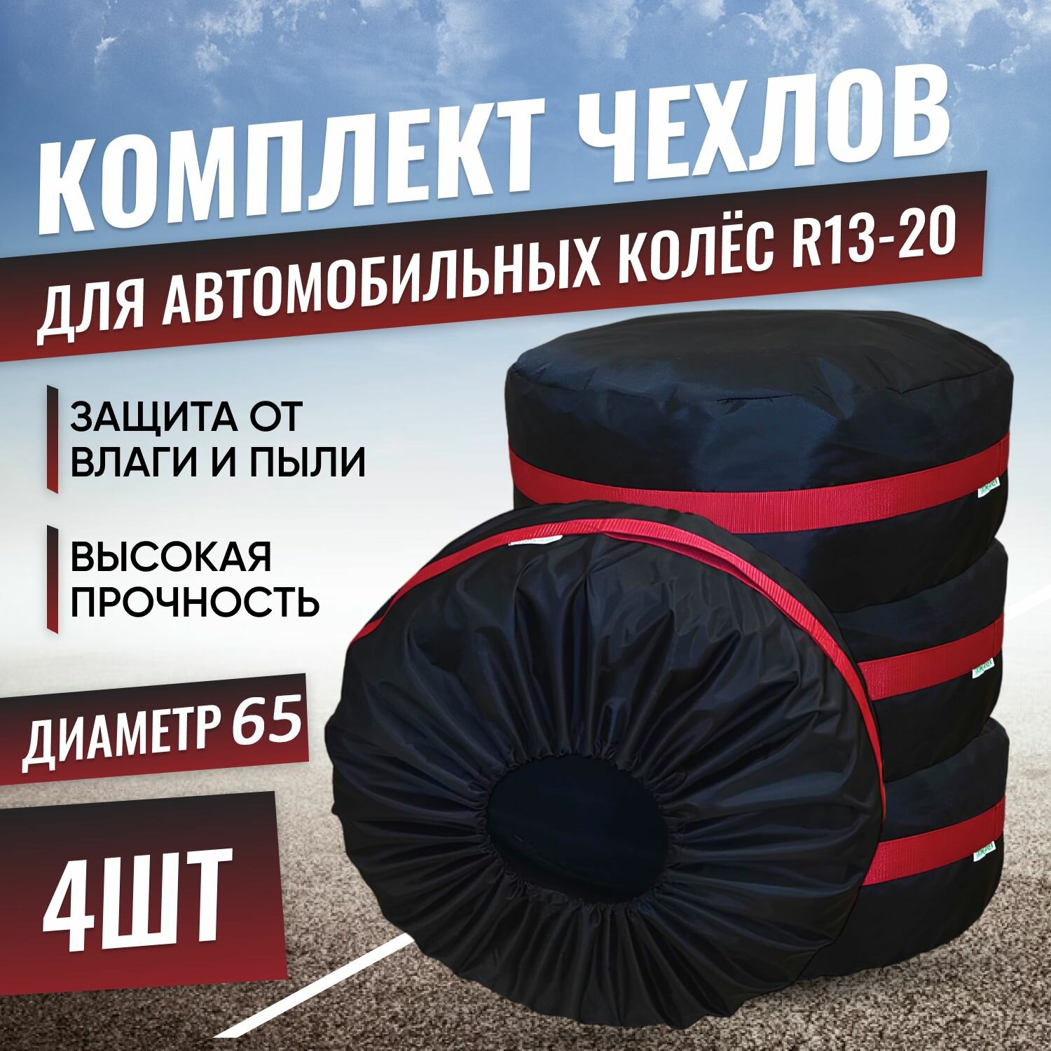 Комплект чехлов для хранения колес автомобиля, диаметр 65см, 4шт. информация: