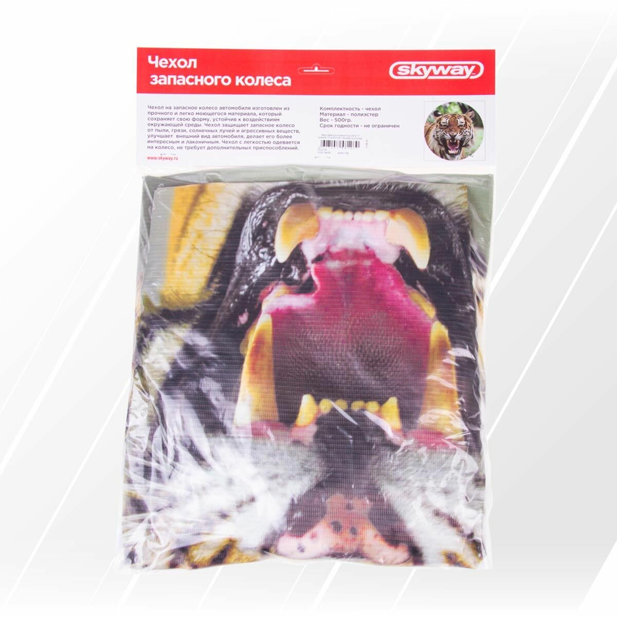 10 цен на Чехол запасного колеса R16,17 диаметр 77см SKYWAY экокожа/полиэстер Тигр 2 (S06301035)