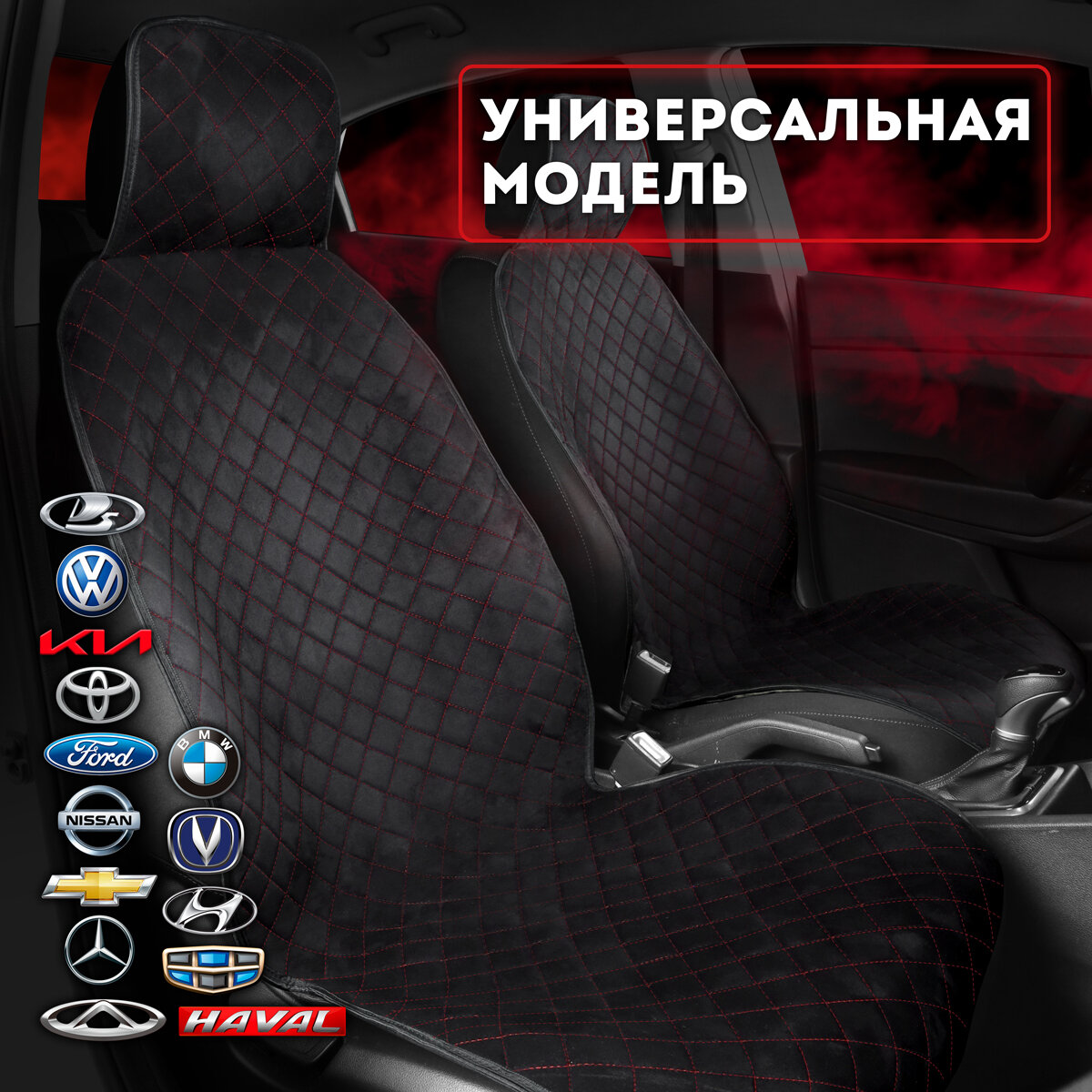 10 цен на Carcape/ Накидки чехлы на весь салон автомобиля из алькантары. Полный комплект накидок. Модель SOFIA PK. Черный, красная строчка