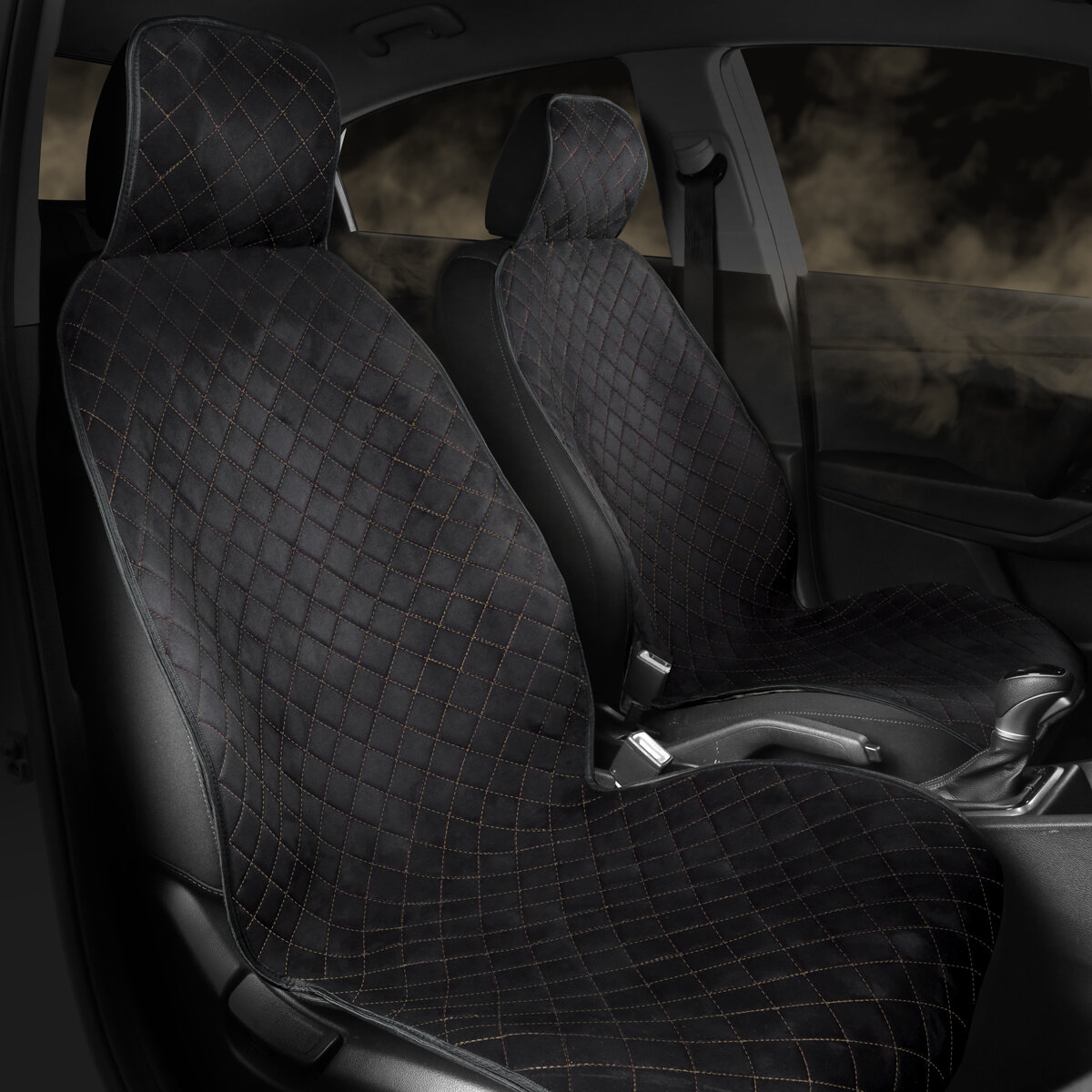 10 цен на Carcape/ Накидки чехлы на весь салон автомобиля из алькантары. Полный комплект накидок. Модель SOFIA PK. Черный, бежевая нить