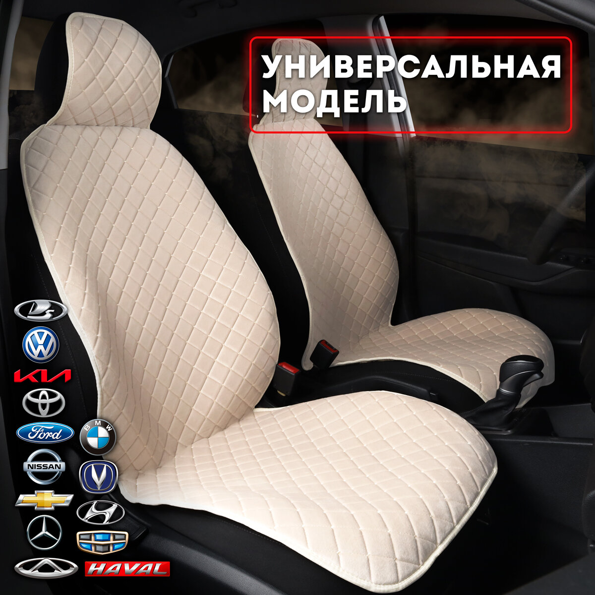 10 цен на CarCape/ Накидки чехлы на авто из велюра комплект на передние сиденья машины 2шт. Модель ISTANBUL. Бежевый