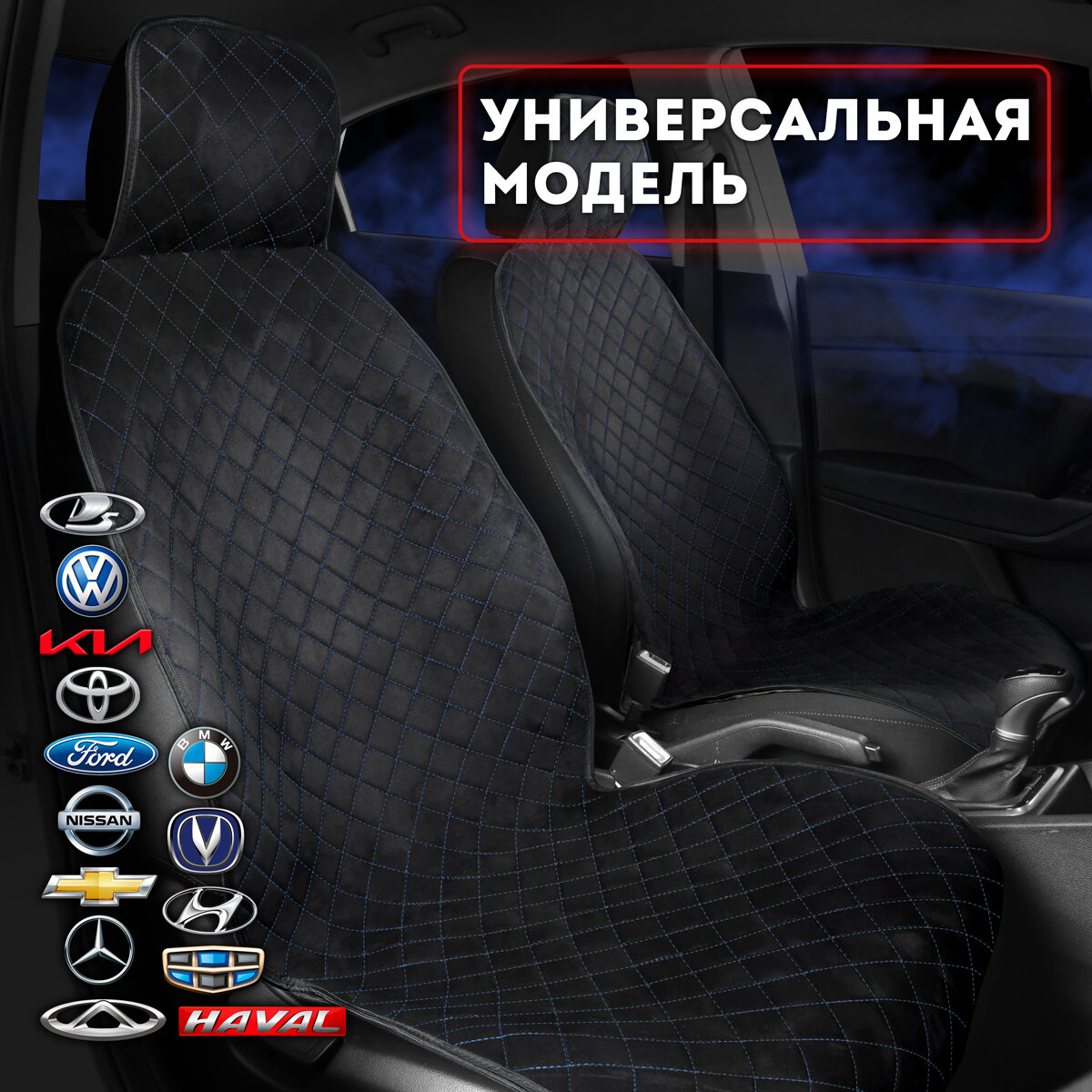10 цен на CARCAPE/ Накидки чехлы на сиденье автомобиля из алькантары универсальные накидки на передние сиденья 2шт. Модель SOFIA. Черный, синяя строчка