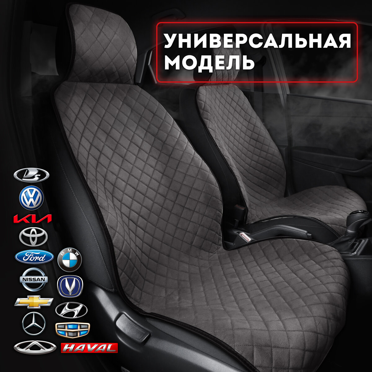 10 цен на CARCAPE/ Накидки чехлы на сиденье автомобиля из алькантары универсальные накидки на передние сиденья 2шт. Модель SOFIA. Тёмно-серый