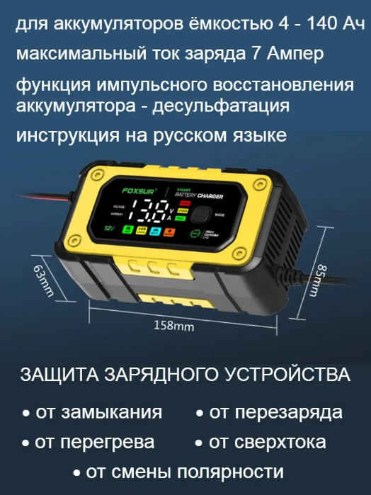 Отзывы на FOXSUR / Зарядное устройство FOXSUR 12V-7A для аккумулятора автомобиля