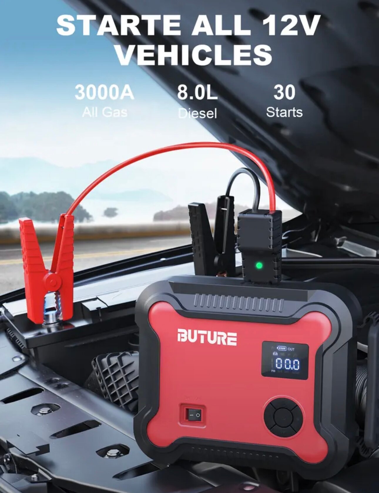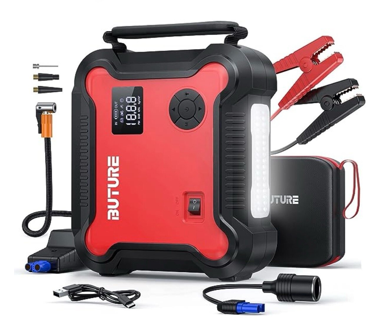 Отзывы на Пусковое портативное устройство бустер BUTURE с компрессором 26800mAh 3000A