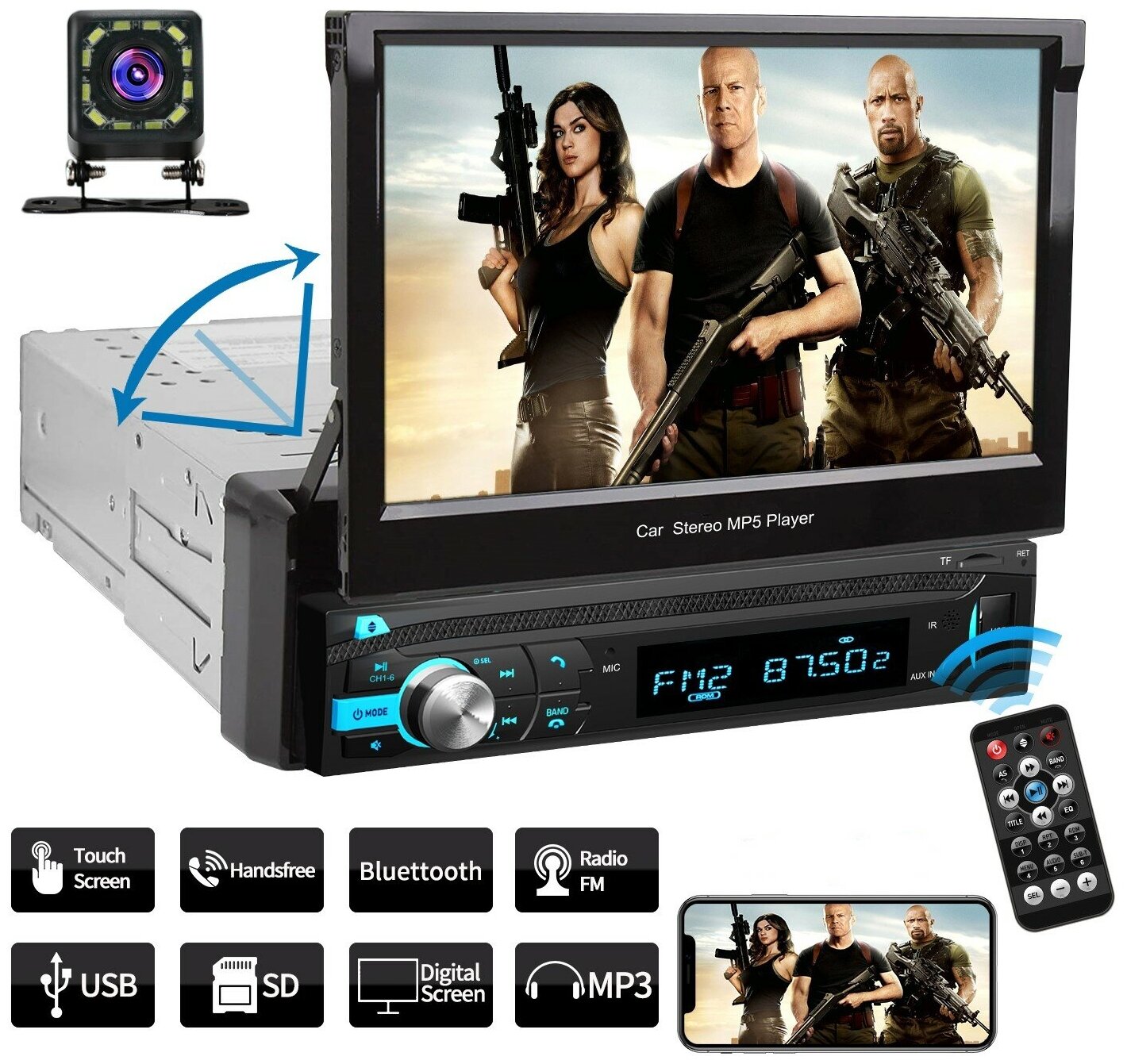 10 цен на Автомагнитола с выдвижным экраном, автомагнитола 1 дин с выдвижным экраном, bluetooth, USB, AUX, пульт ДУ, поддержка камеры заднего вида