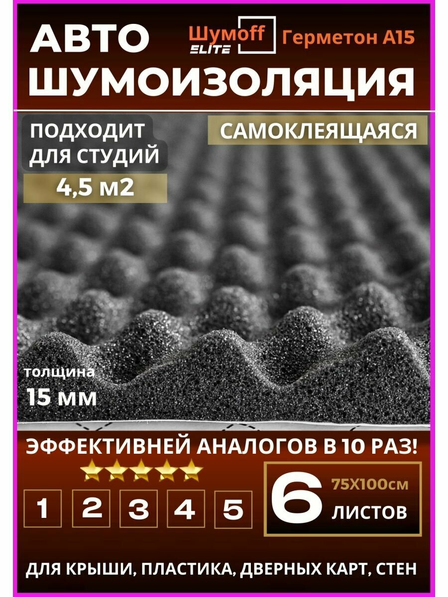 10 цен на Акустический поролон Шумофф Герметон А15 - 6 листов. Шумоизоляция для автомобиля Шумоff 15 мм, шумка в авто, шумоизоляция дверей, дверных карт, крыши, потолка, пола, шумка в машину, звукоизоляция авто, акустика в машину