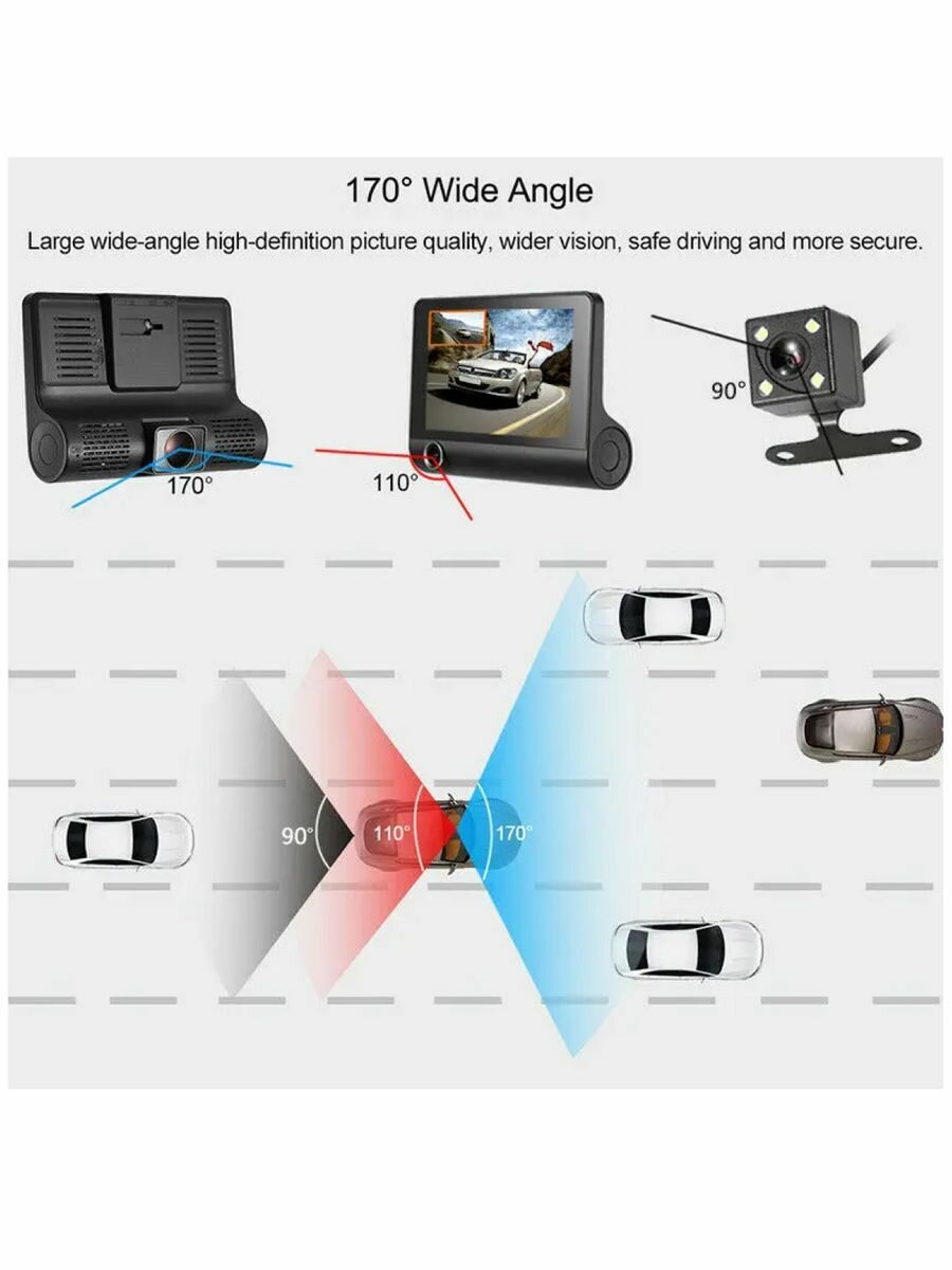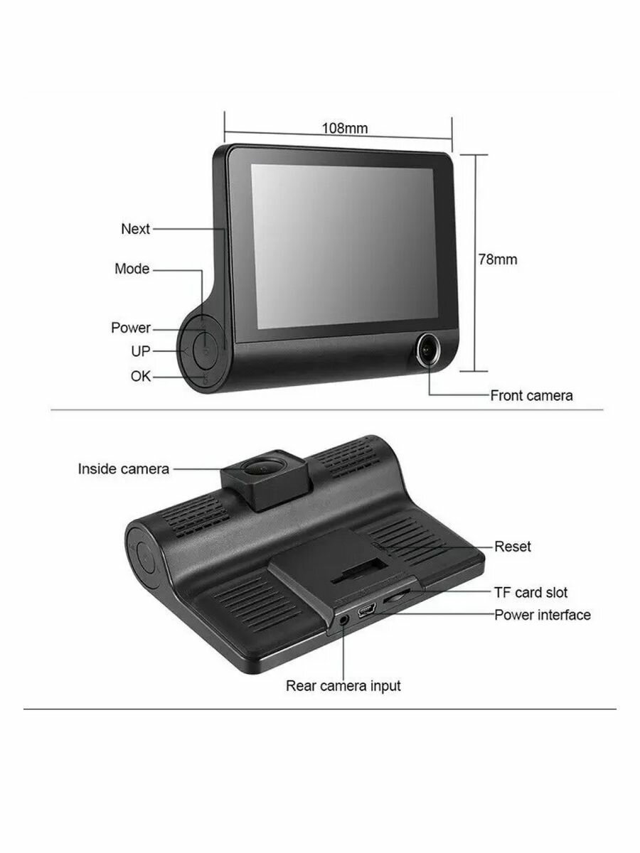 Видеорегистратор Bootleg FULL HD 1296P с 2-мя камерами /Дисплей 4``c поддержкой "изображение в изображении" /Объектив 170*/G-сенсор