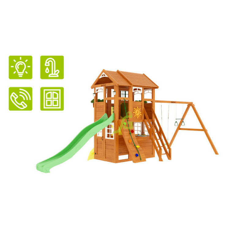 | Дополнительная информация | доска для игры в Крестики-нолики; длина ската горки 1 - 300 см; высота площадки горки 1,2 - 150 см; количество горок: 2; количество качелей: 1 |